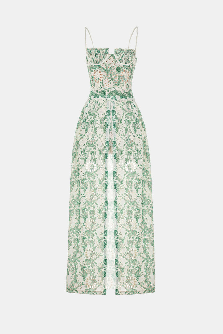 Abetzi Floral Embroidered Shorts & Maxi Dress Set - Green