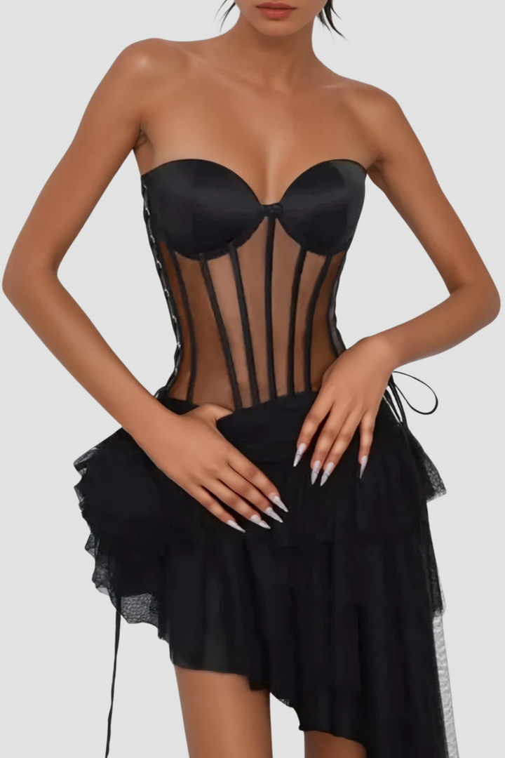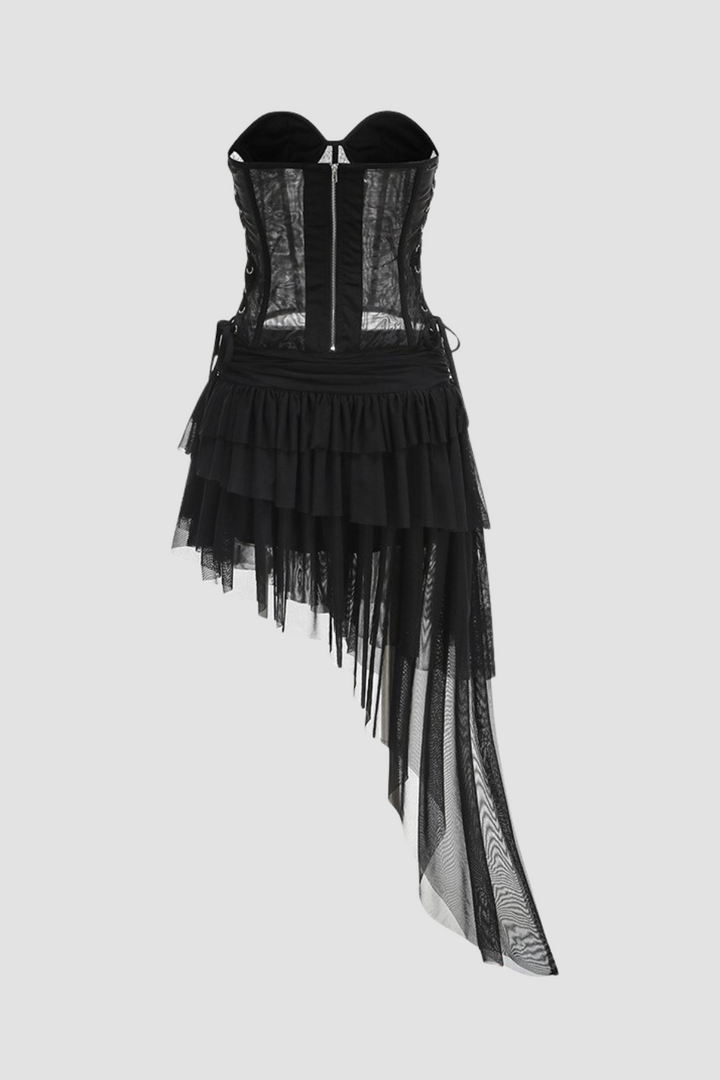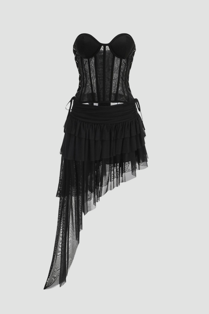 Apollo Mesh Corset Asymmetric Two Piece Set
