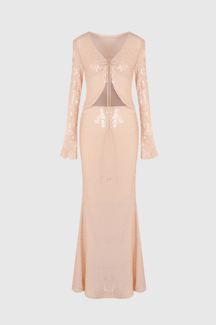 Indulge in opulence with the Aubelin Sequin Two Piece Set. This luxurious set features intricate sequin detailing on both the top and bottom, offering a sophisticated and eye-catching look. Perfect for formal events or a night out on the town, elevate your style with this exclusive set in a stunning brown color.