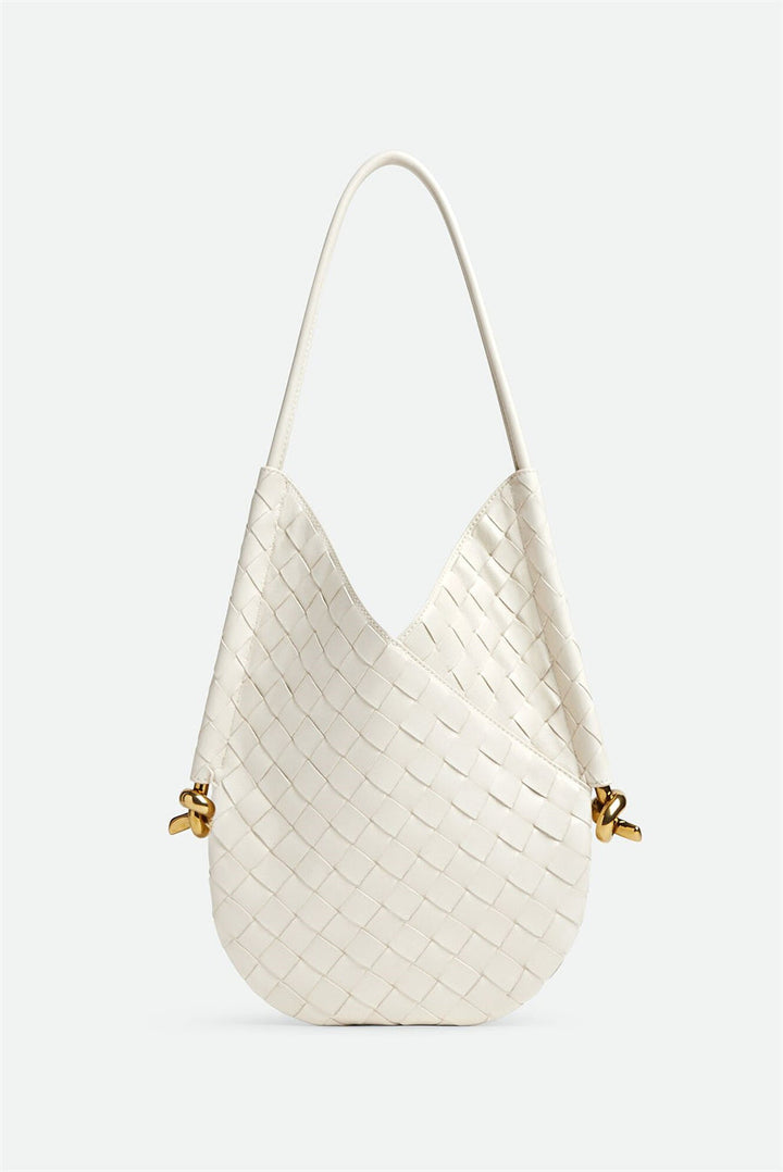 Take your style to the next level with the Azalea Weave Mini Shoulder Bag. This unique bag features a beautifully crafted Azalea weave pattern and eye-catching metal knot details, creating a chic and exclusive look. Perfect for any occasion, it effortlessly combines art, fashion, and sophistication. Make a statement and stand out with our Azalea bag.