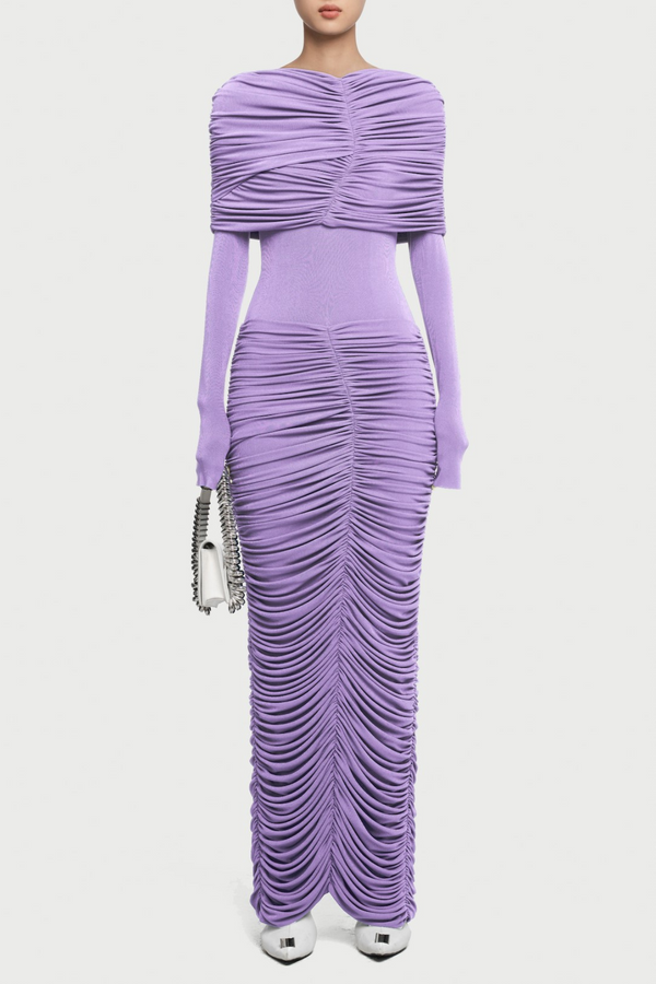 Birdya Symmetrical Draped Shoulder Maxi Dress - Purple