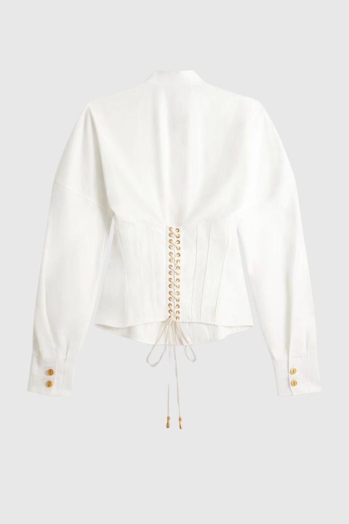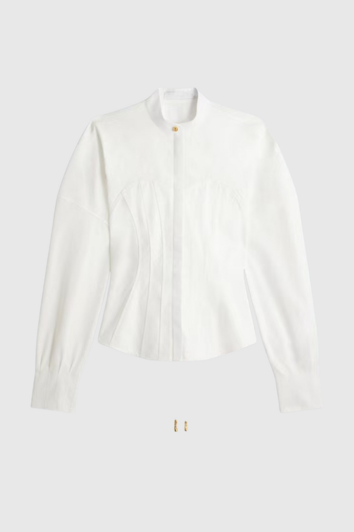 Elevate your wardrobe with the Brentia Corset Shirt, a refined blend of structure and style. Designed to sculpt and flatter, this piece offers a tailored fit that enhances your silhouette while maintaining elegant comfort. Perfect for sophisticated occasions or chic everyday wear, the Brentia Corset Shirt adds a modern edge to classic tailoring with its distinctive corset-inspired design.