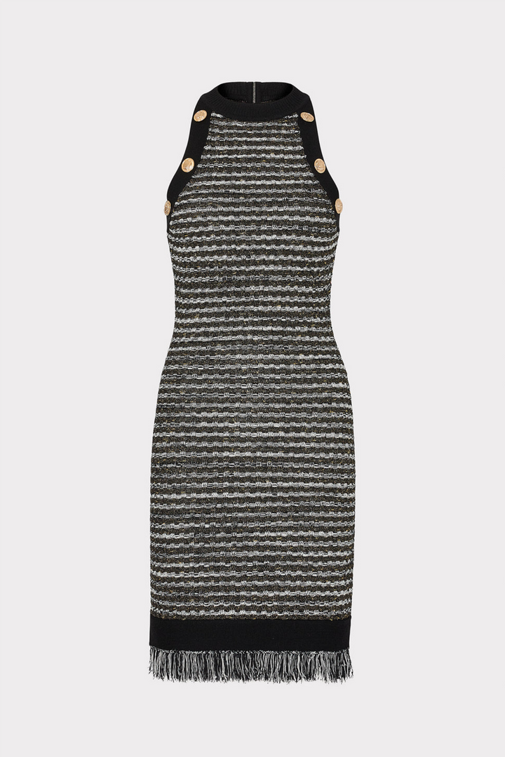 Cailean Fringe Tweed Sleeveless Mini Dress