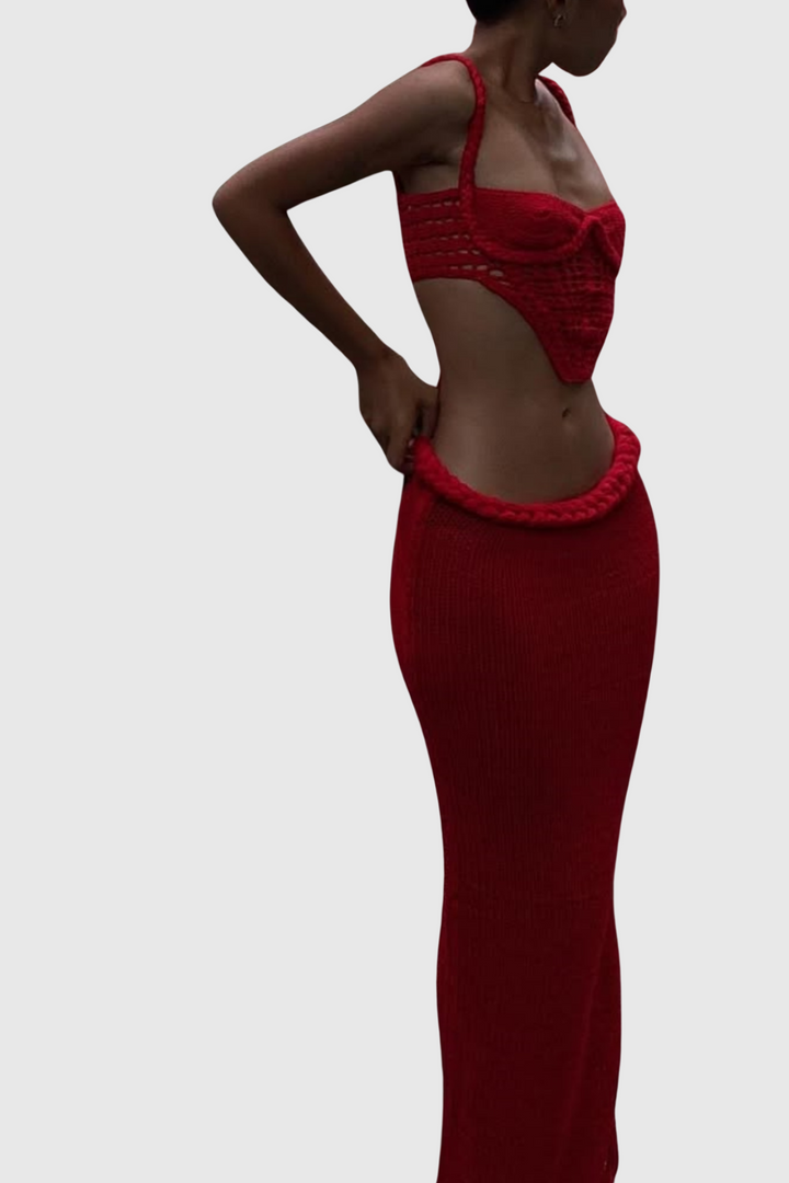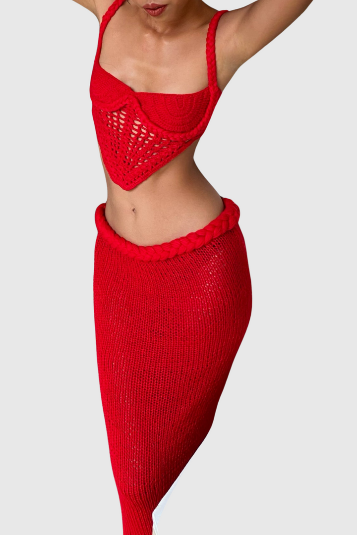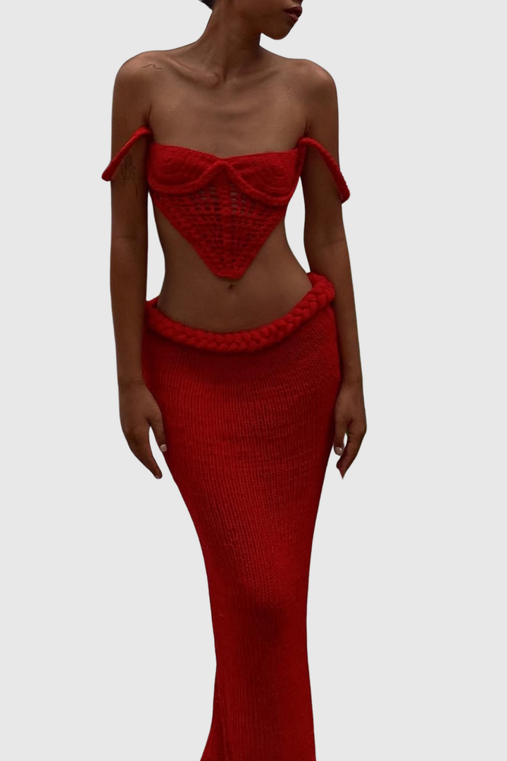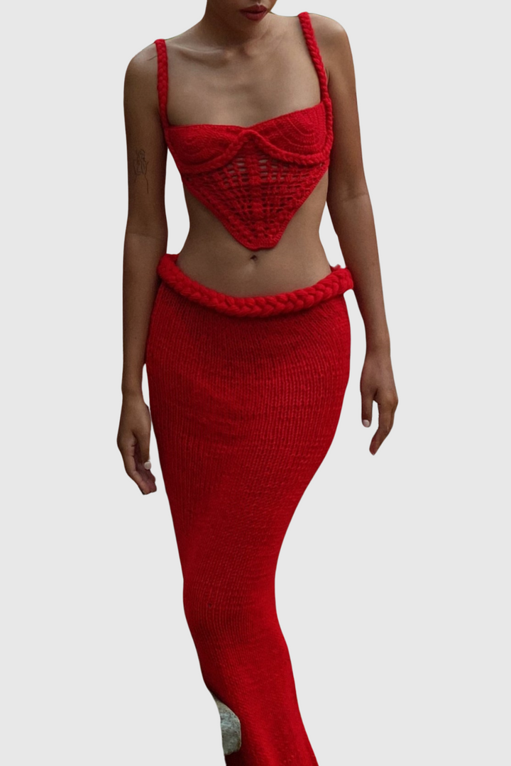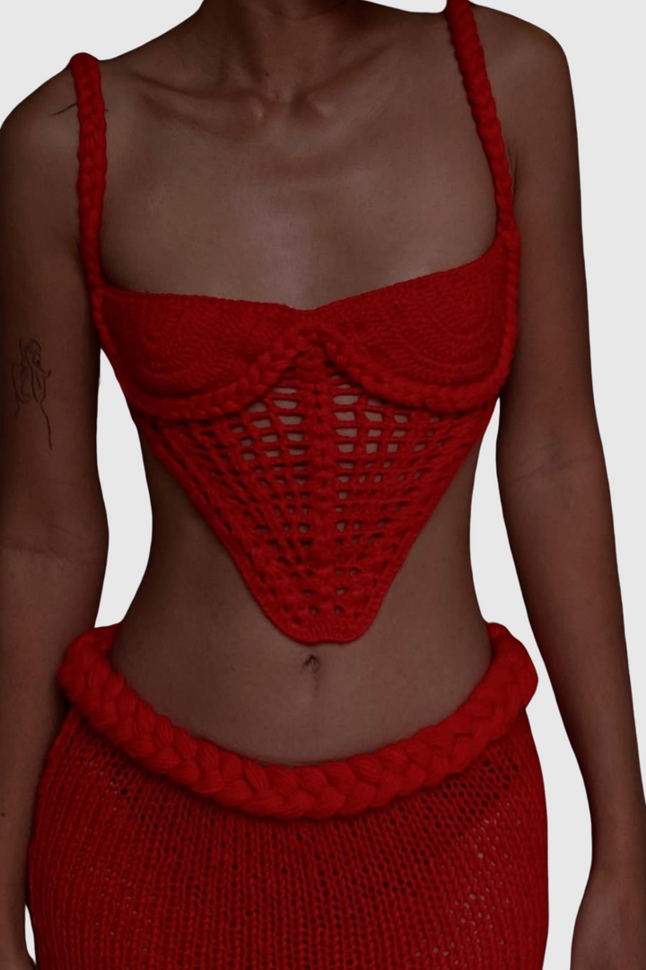 Chaylee Crochet Rope Corset Two Piece Set - Red