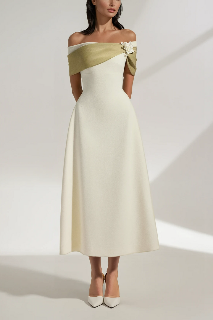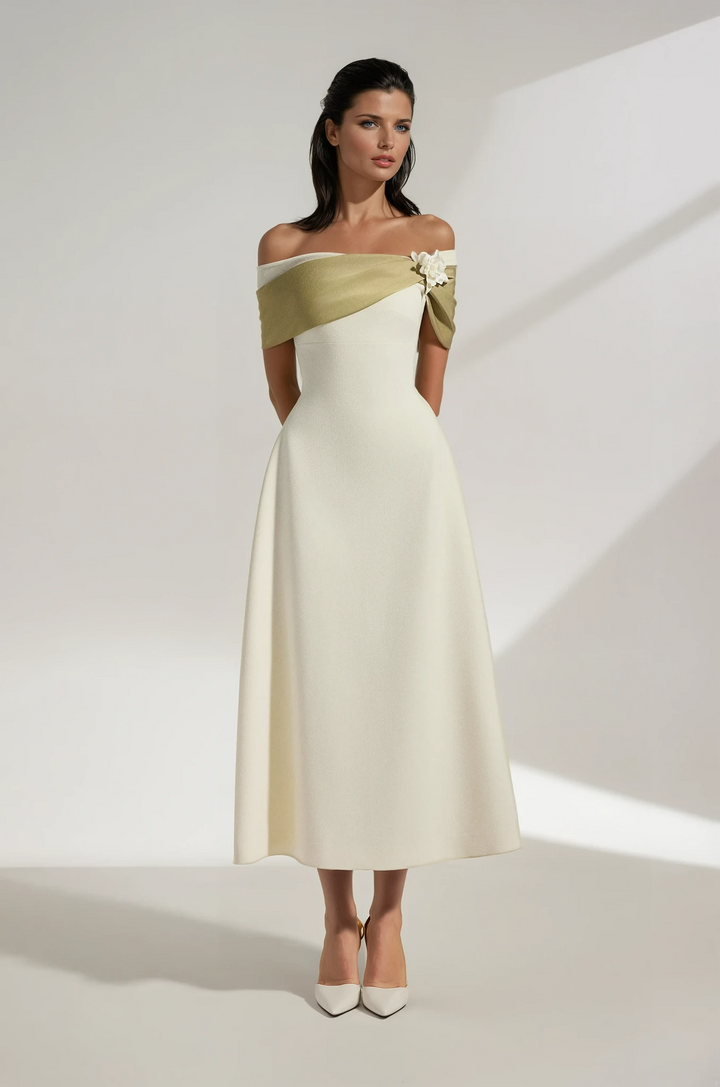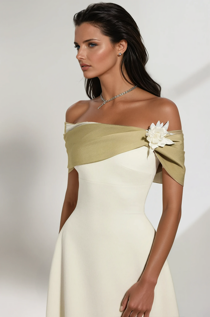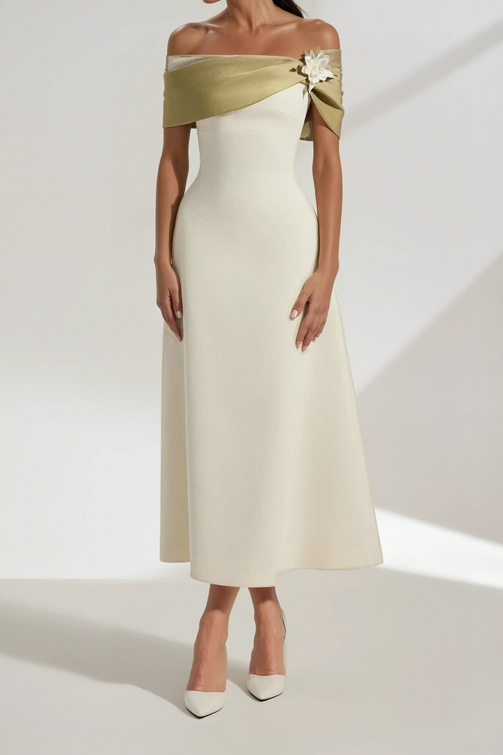 Elevate your wardrobe with the Cicek Floral Appliqué Off Shoulder Midi Dress, a refined choice for elegant occasions. This dress features delicate floral appliqués that add a touch of artistry, while the off-shoulder design gracefully highlights your neckline. Its midi length offers a balanced silhouette, perfect for sophisticated gatherings or special events. Experience timeless style combined with subtle charm in this exquisite piece.