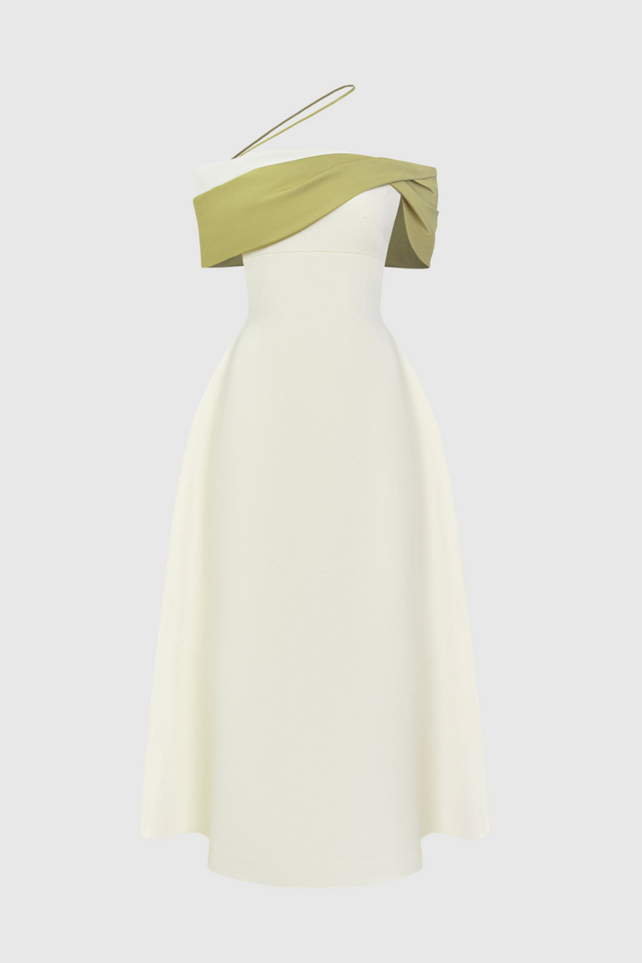 Cicek Floral Appliqué Off Shoulder Midi Dress