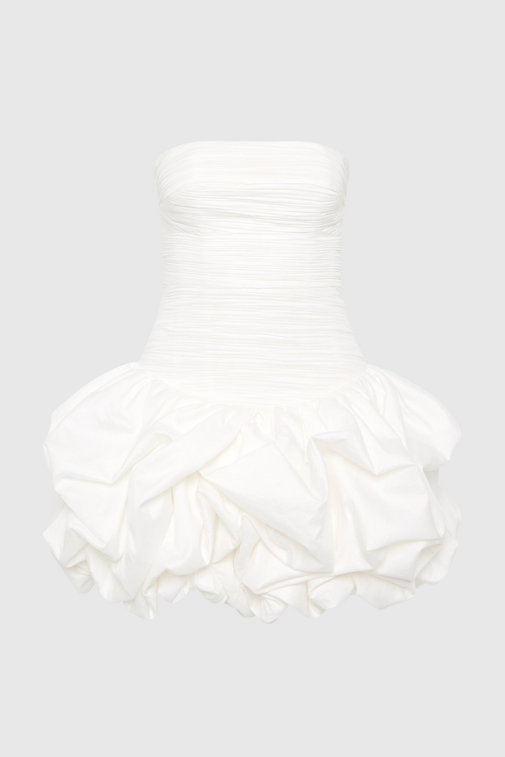 Coleka Floral Print Strapless Ruched Mini Dress - White