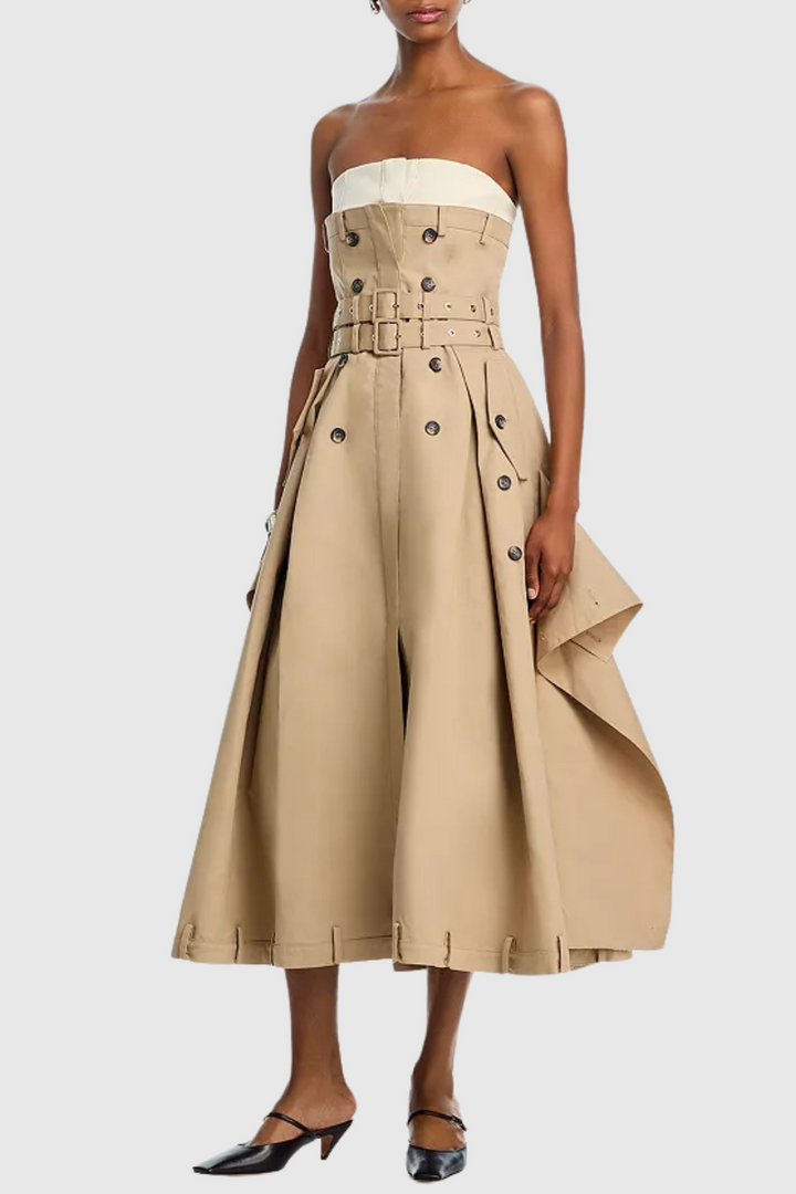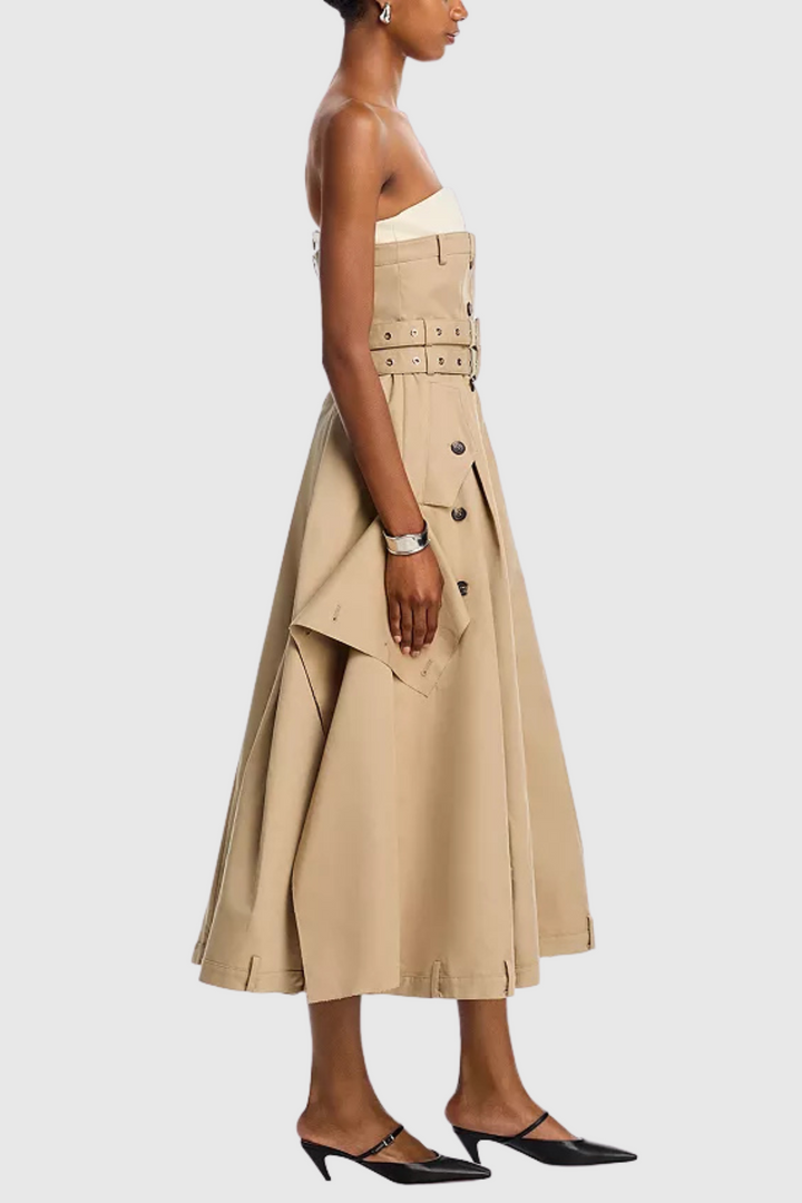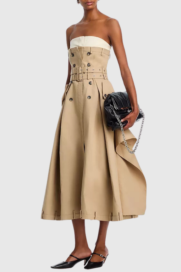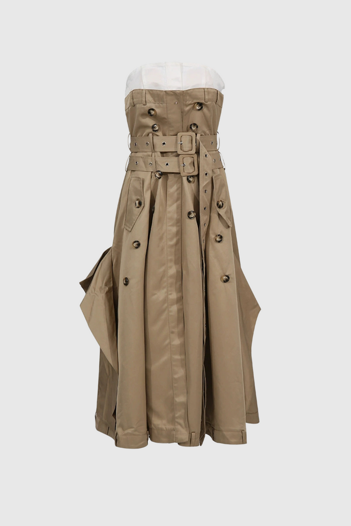 Elevate your wardrobe with the Cordero Strapless Trench Belted Midi Dress, a refined blend of classic trench details and modern strapless elegance. This midi-length dress features a tailored belted waist that accentuates your silhouette, offering a sophisticated and polished look perfect for both formal occasions and stylish daywear. Crafted to combine structure with effortless grace, it’s an essential piece for a confident, chic statement.