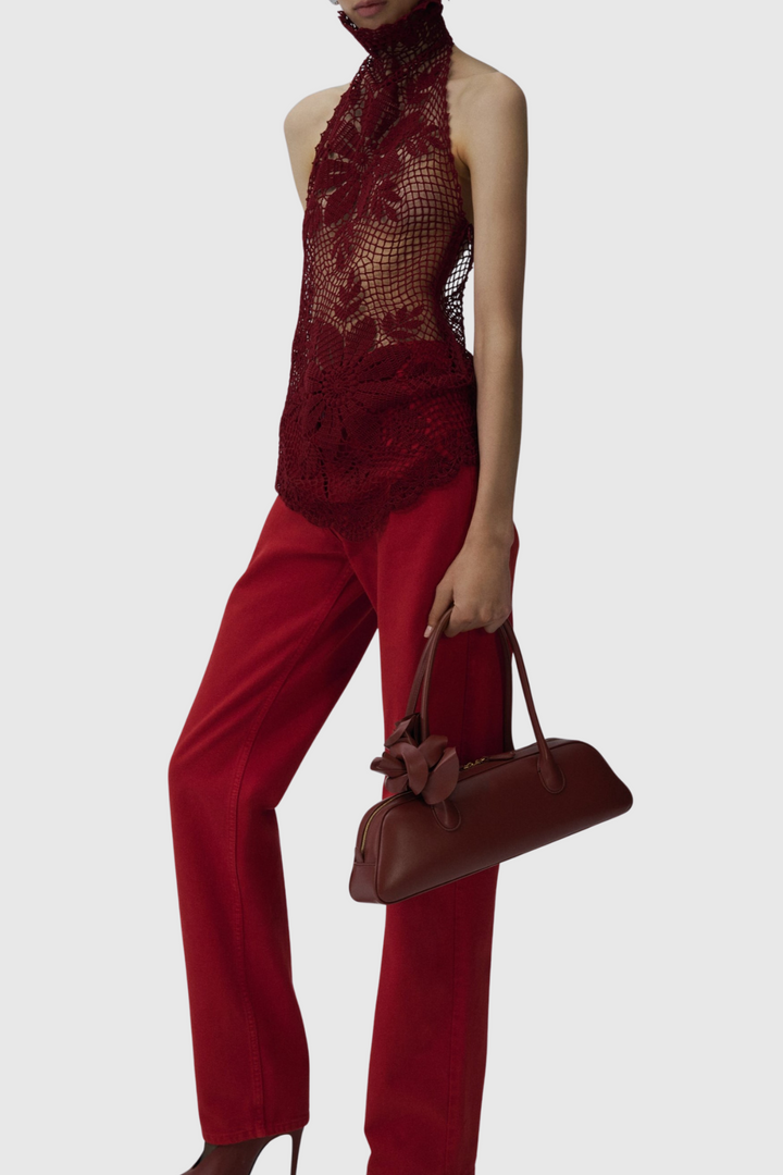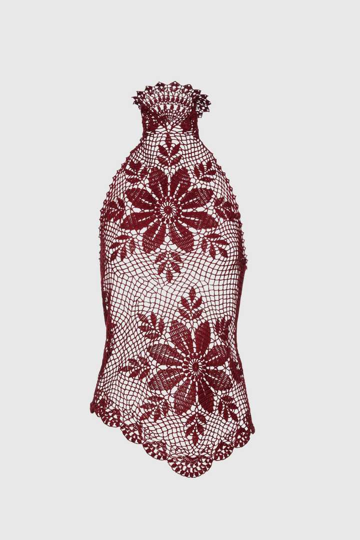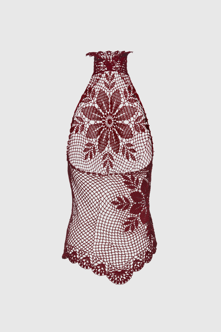 Elevate your wardrobe with the Corliss Floral Lace Crochet Top in elegant wine. This sophisticated piece features delicate floral lace crochet craftsmanship, offering a timeless texture and graceful silhouette. Its neutral hue effortlessly pairs with both casual and refined ensembles, making it a versatile addition to any collection. Perfect for layering or wearing alone, the top adds a subtle touch of luxury and intricate detail to your look.