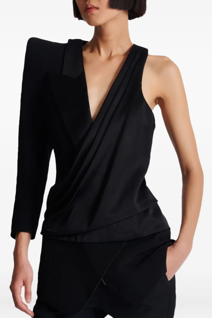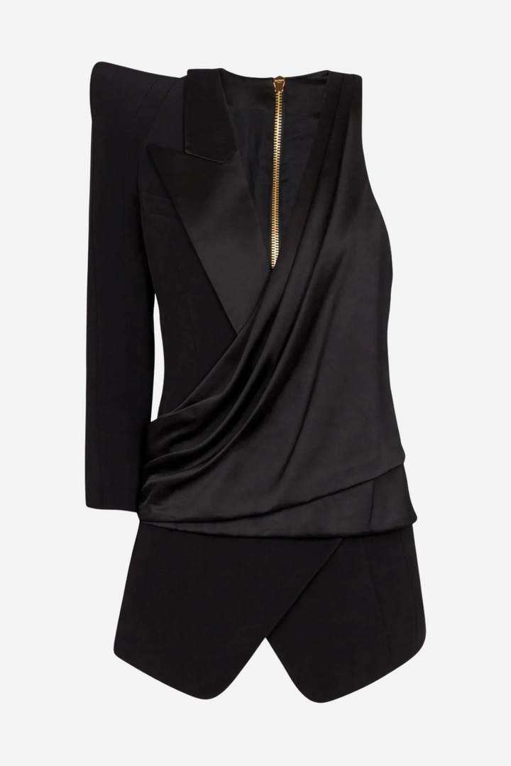 Elevate your wardrobe with the Crisoda Asymmetric Structured Blouse Blazer, designed to blend contemporary elegance with bold tailoring. Its distinctive asymmetric cut adds a modern edge, while the structured fit delivers a refined silhouette, perfect for making a confident statement at any event or professional setting. Crafted to offer both style and sophistication, this blazer transitions effortlessly from day to night, enhancing your ensemble with its unique, polished charm.