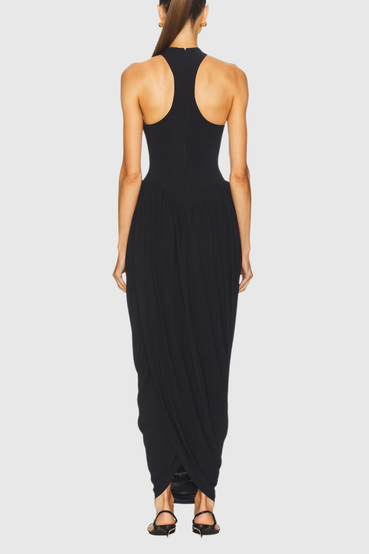 Elevate your wardrobe with the Doyle Sleeveless Ruched Midi Dress in classic black. Its sleek silhouette is enhanced by elegant ruching that flatters your figure while providing comfortable stretch. Perfect for sophisticated occasions, this midi-length dress blends timeless style with modern refinement, making it an essential piece for effortless, polished looks.