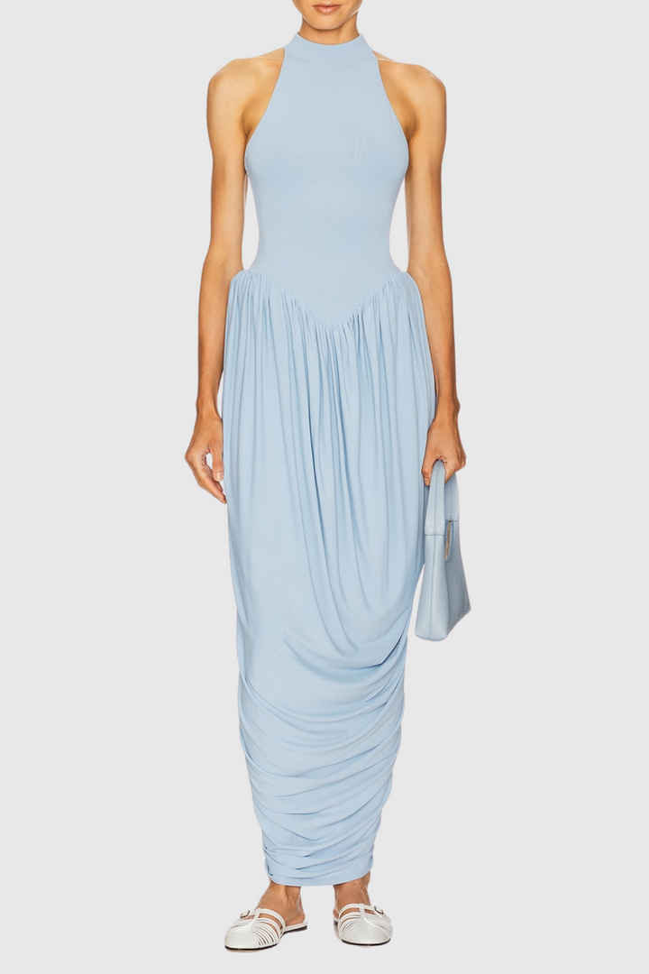 Doyle Sleeveless Ruched Midi Dress - Blue