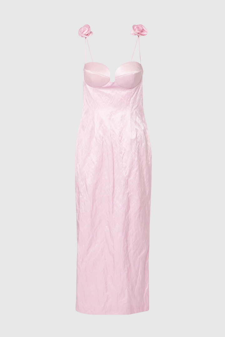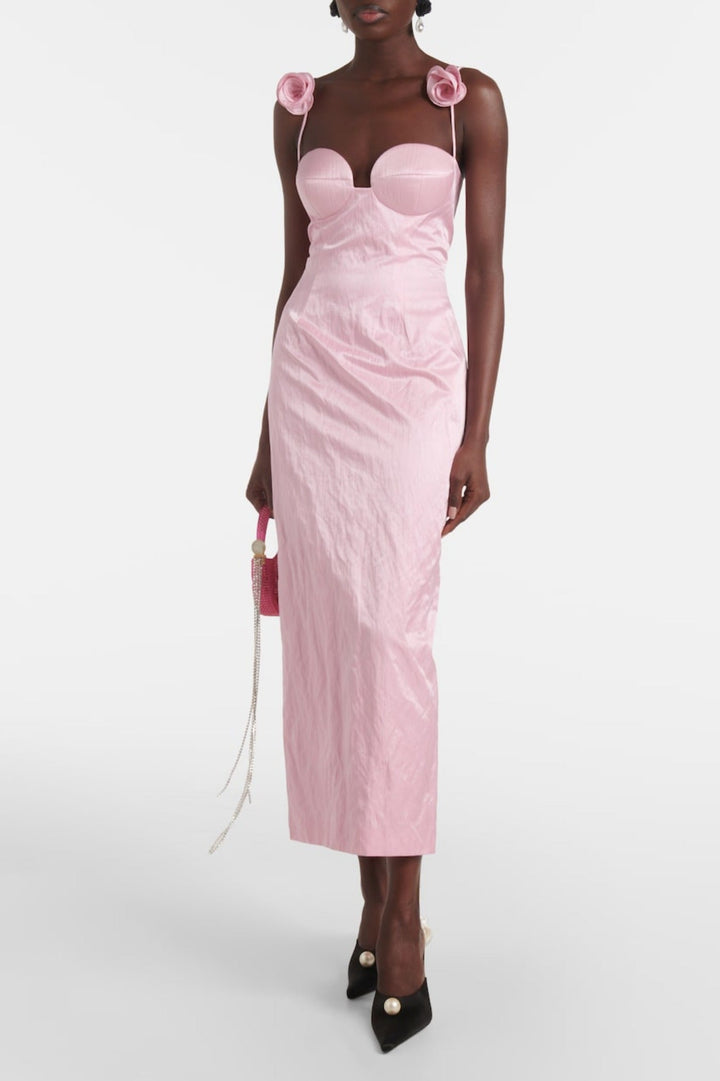 Durana Floral Appliqué Bustier Midi Dress - Pink