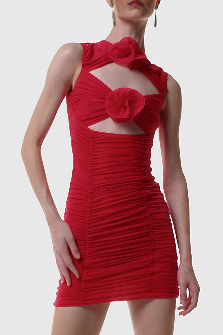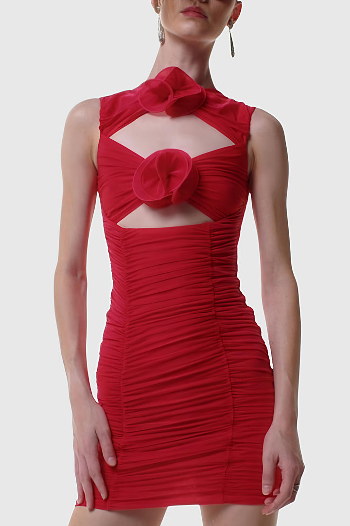 Elevate your style with the Earls Floral Sleeveless Ruched Mesh Mini Dress. Crafted from delicate mesh, this dress features a flattering ruched design that enhances your silhouette while floral detailing adds a touch of refined elegance. Its sleeveless cut and mini length offer a graceful balance between modern sophistication and timeless charm, perfect for soirées or upscale gatherings.