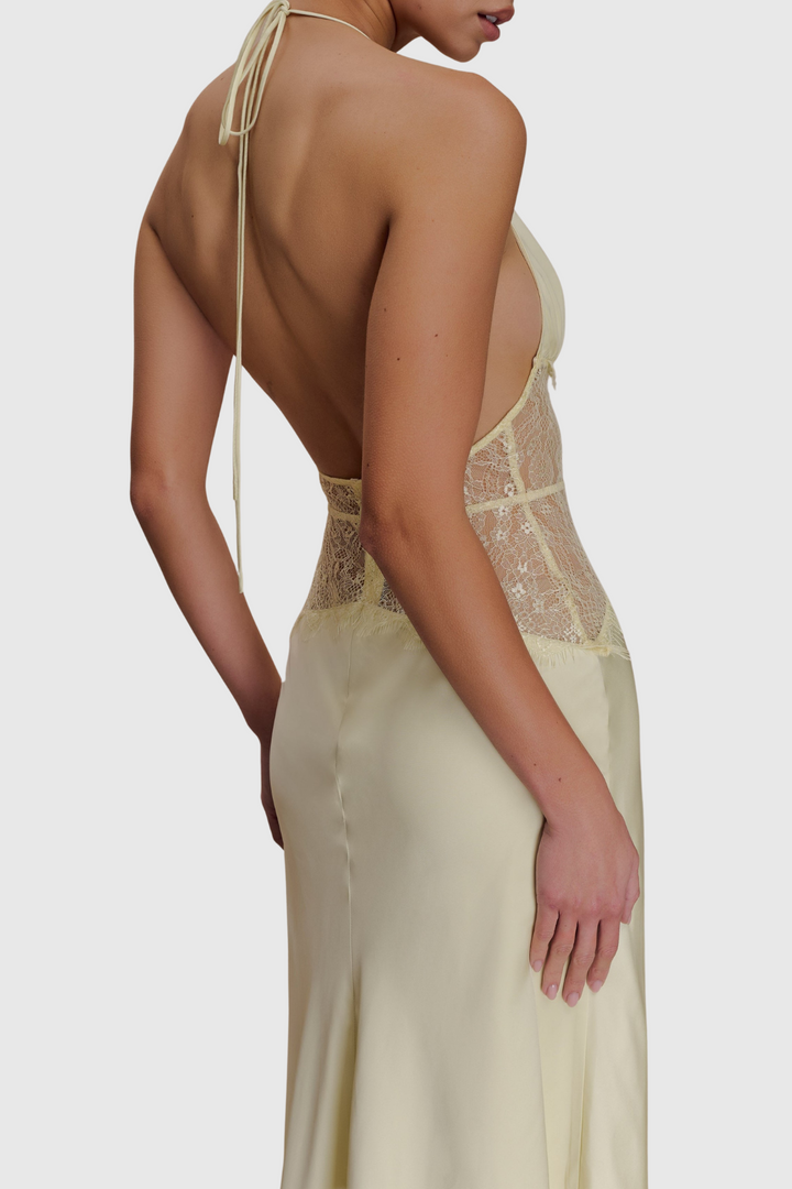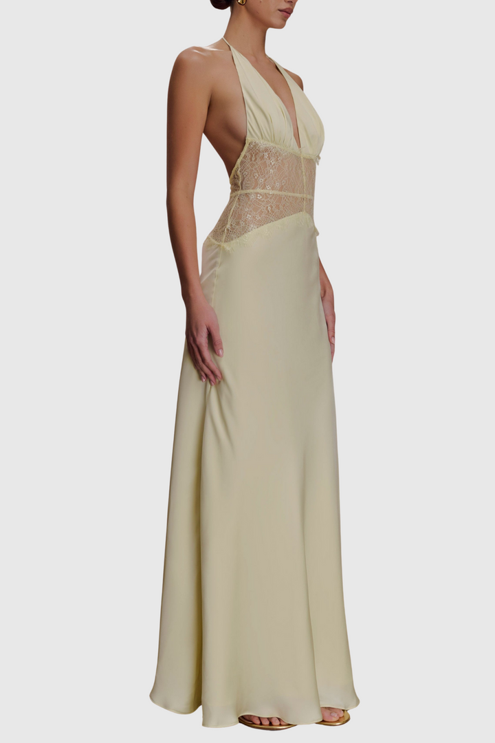 The Edwiga Lace Halter Maxi Dress embodies sophisticated charm with its intricate lace design and elegant halter neckline. Its flowing maxi length offers a graceful silhouette that enhances your poise, making it an ideal choice for upscale events and evening affairs. Embrace timeless elegance with this refined dress.