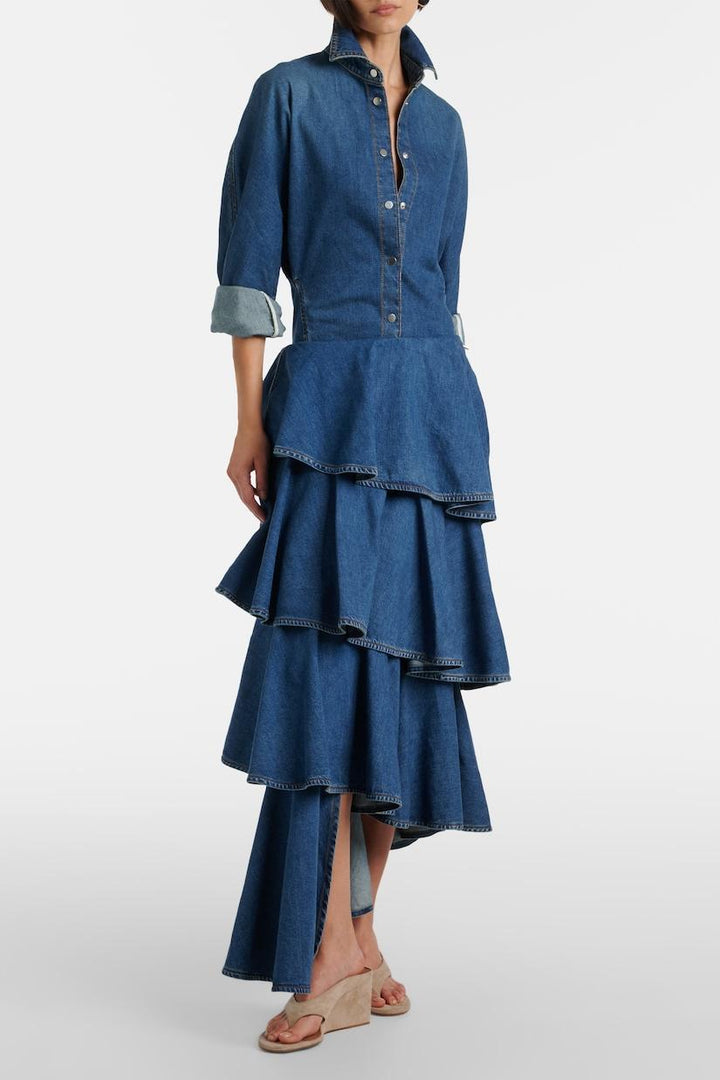 Elevate your wardrobe with the Eryx Spiral Tiered Denim Midi Skirt, designed to blend classic denim craftsmanship with a modern, sophisticated silhouette. Its spiral tiered construction creates graceful movement and subtle texture, making it perfect for both casual and refined occasions. This midi-length skirt offers a flattering fit that enhances your natural shape while providing all-day comfort. Pair it effortlessly with tailored tops or elegant blouses to complete a polished, stylish look.