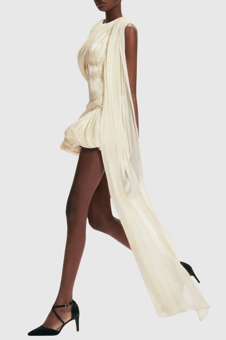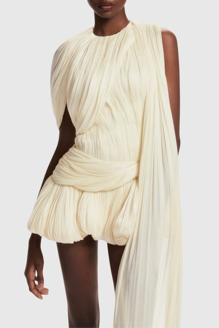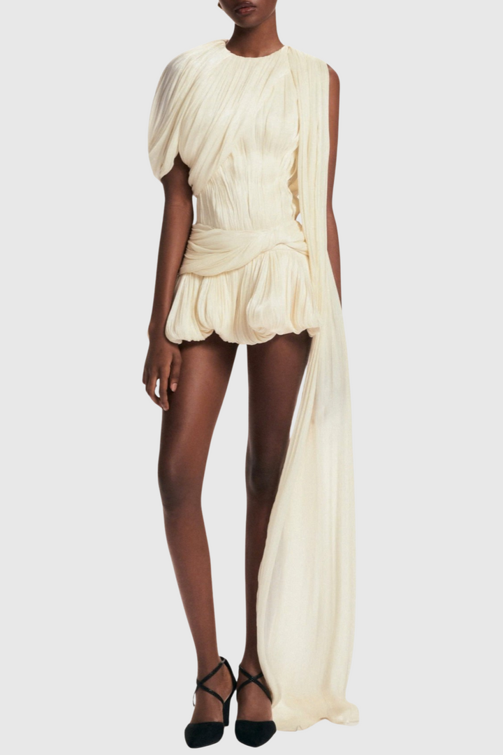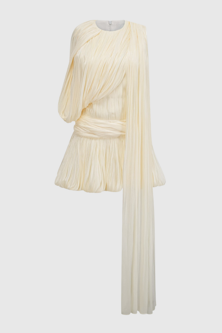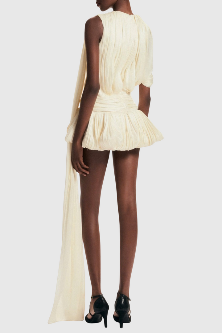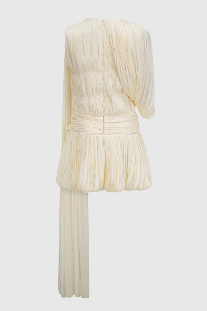 Elevate your evening with the Evrar Asymmetric Pleated One Shoulder Mini Dress. Designed to gracefully contour the silhouette, its asymmetric neckline and delicate pleats create a modern, refined look. This mini dress combines elegance with a subtle edge, perfect for sophisticated occasions where standout style matters.