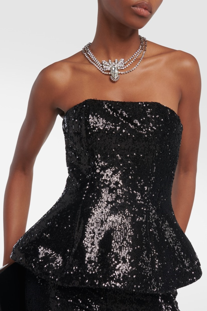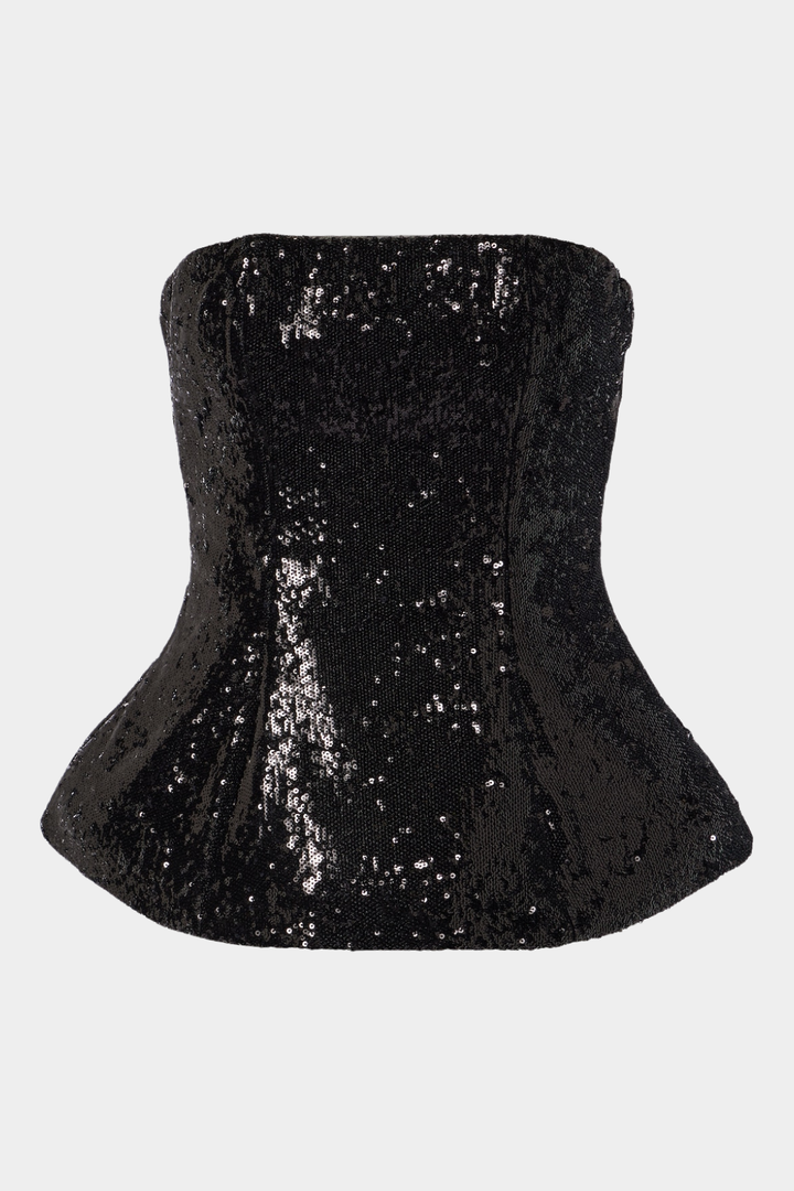 Elevate your evening wardrobe with the Faro Sequin Bustier Top, a refined statement piece designed to capture light and attention. Expertly crafted with shimmering sequins, this bustier shapes a flattering silhouette, enhancing your confidence with every wear. Perfect for sophisticated nights out, it pairs effortlessly with tailored trousers or sleek skirts for a polished, radiant look.