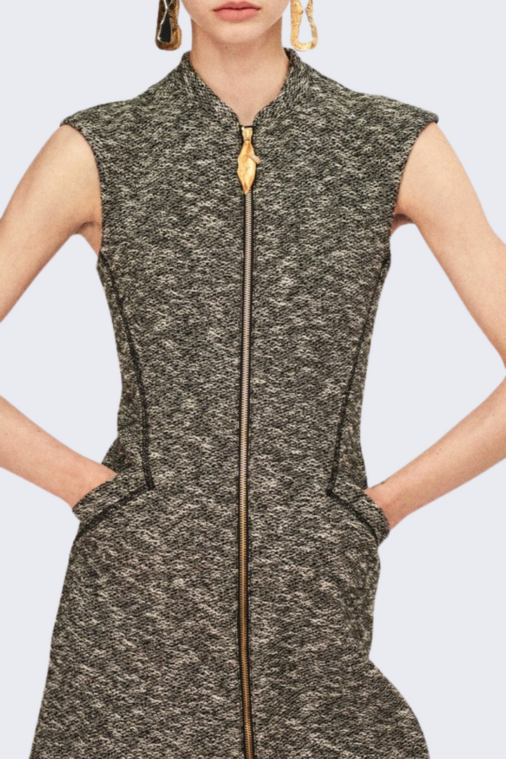 Elevate your wardrobe with the Fawana Sleeveless Zip-up Midi Dress, designed for effortless sophistication. Its sleek zip-up front offers a modern edge, while the midi length provides a balanced, elegant silhouette. Perfect for both formal occasions and chic everyday wear, this dress seamlessly combines style and comfort, making it a versatile addition to any refined collection.