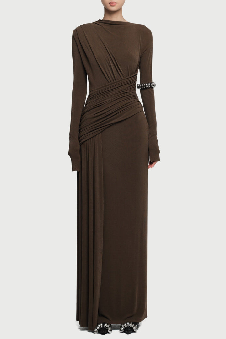 Fiada Draped Long Sleeve Maxi Dress - Brown