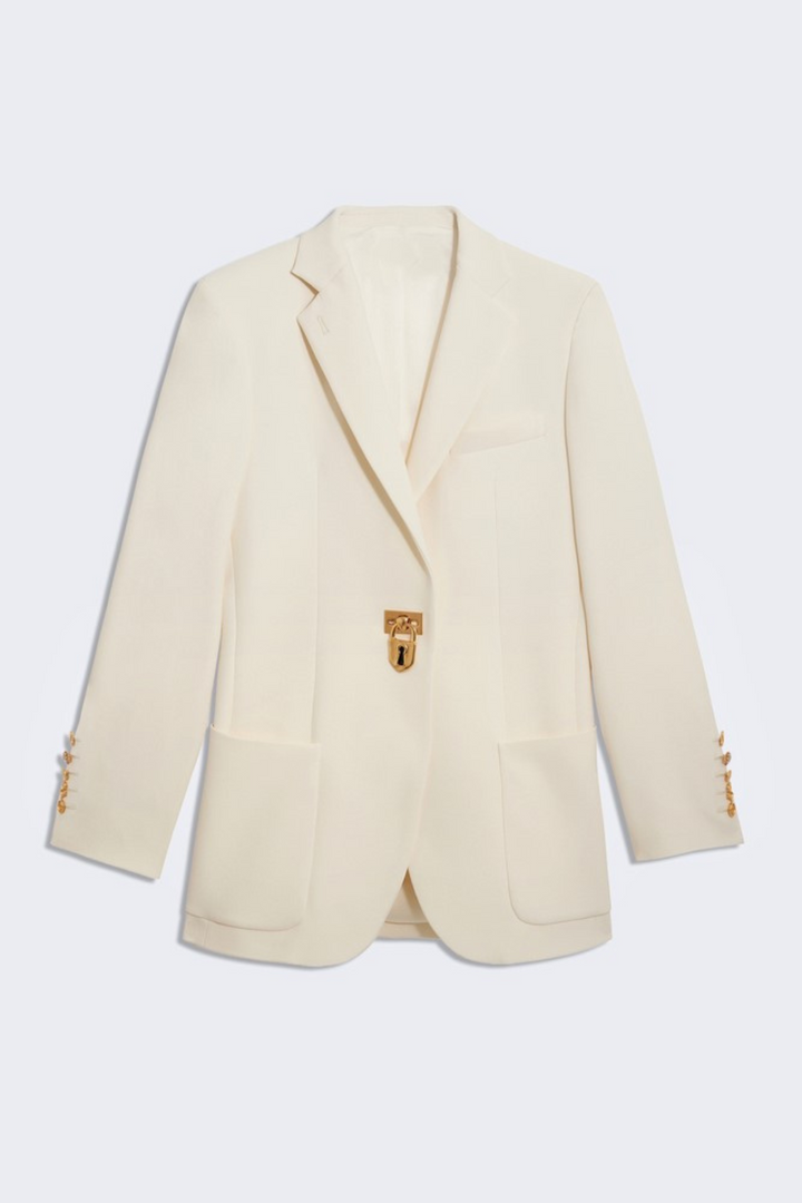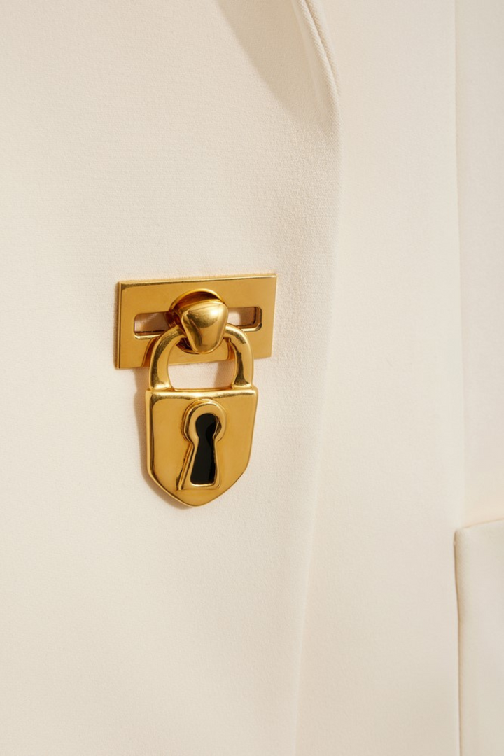 Elevate your wardrobe with the Giacomo Padlock Embellished Blazer, a refined fusion of classic tailoring and modern detailing. Crafted with meticulous attention, its subtle padlock embellishment adds a distinct touch of elegance, making it perfect for both professional settings and stylish evenings. This blazer offers a sleek silhouette that enhances your ensemble effortlessly, ensuring you radiate confidence and sophistication wherever you go.