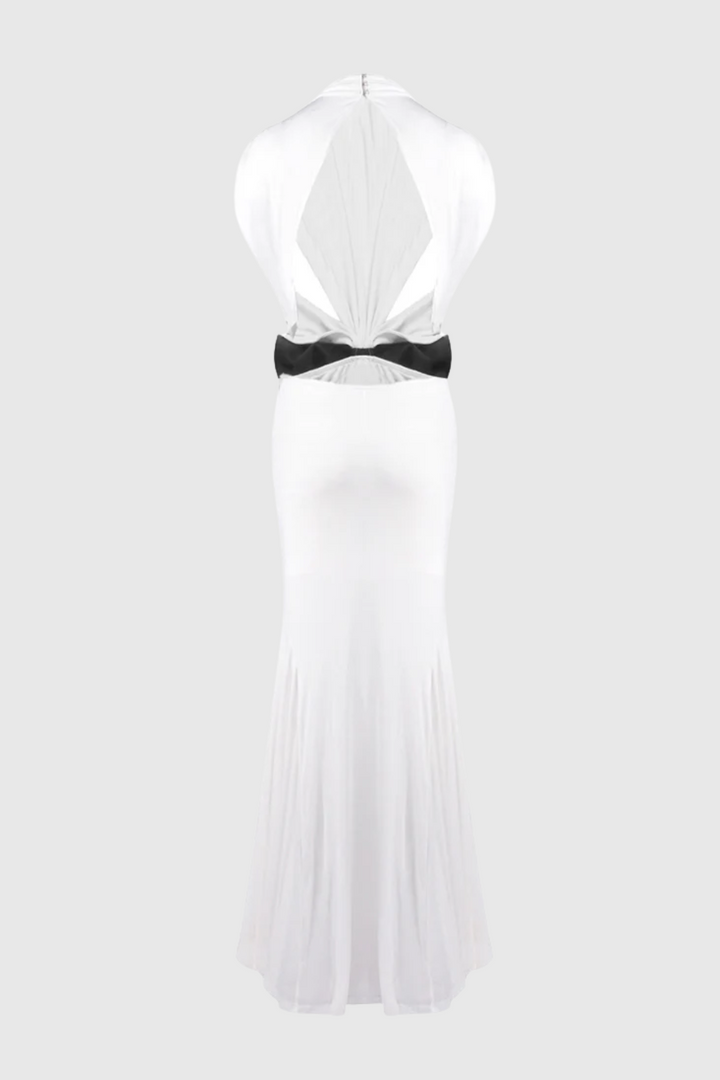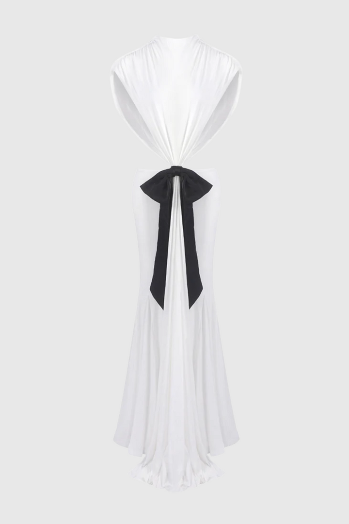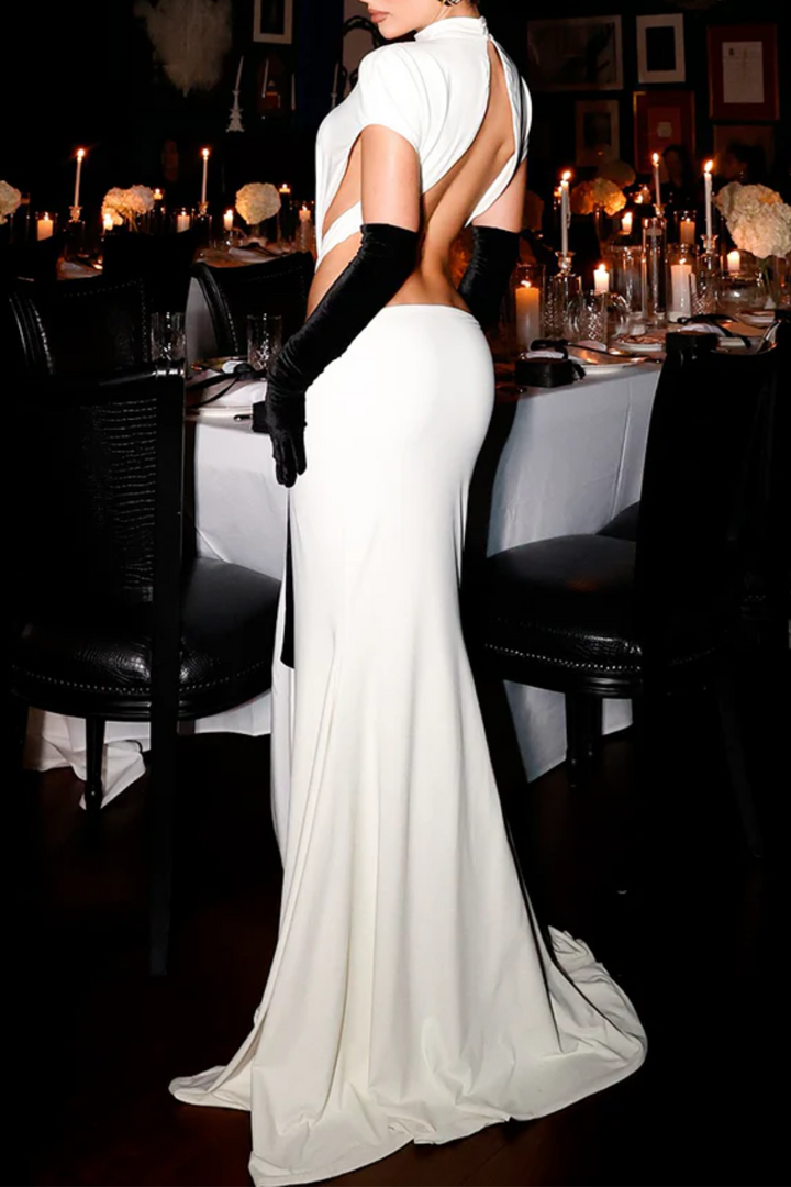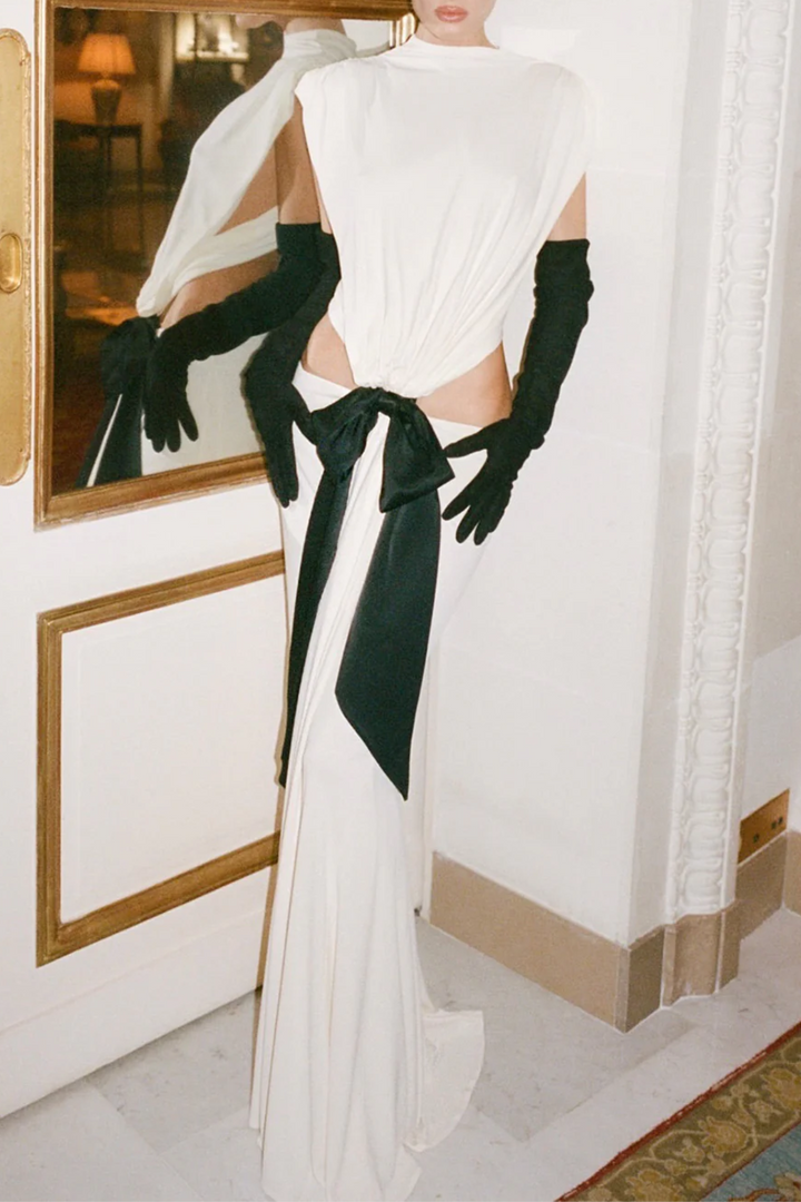Indulge in luxurious elegance with our Graillot Bow Cutout Backless Maxi Dress. The stunning white hue and intricate bow cutouts create a timeless and sophisticated look. Featuring a backless design, this dress is perfect for showcasing your impeccable taste and style. Elevate any occasion with this exclusive and refined piece.