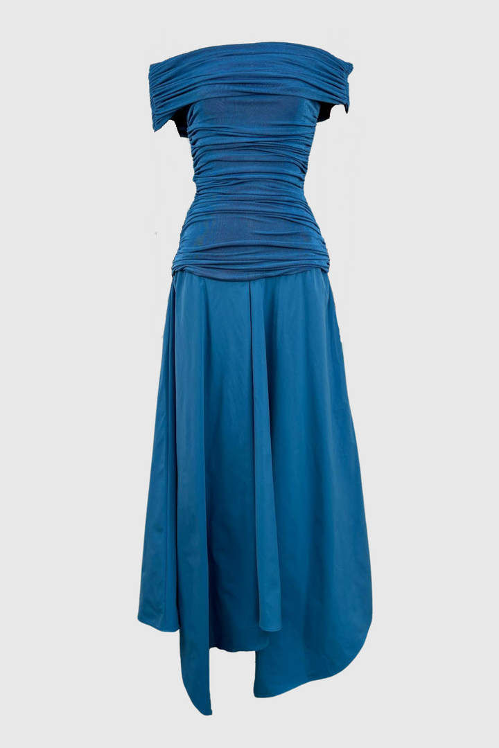 Harsian Off Shoulder Draped Maxi Dress - Blue