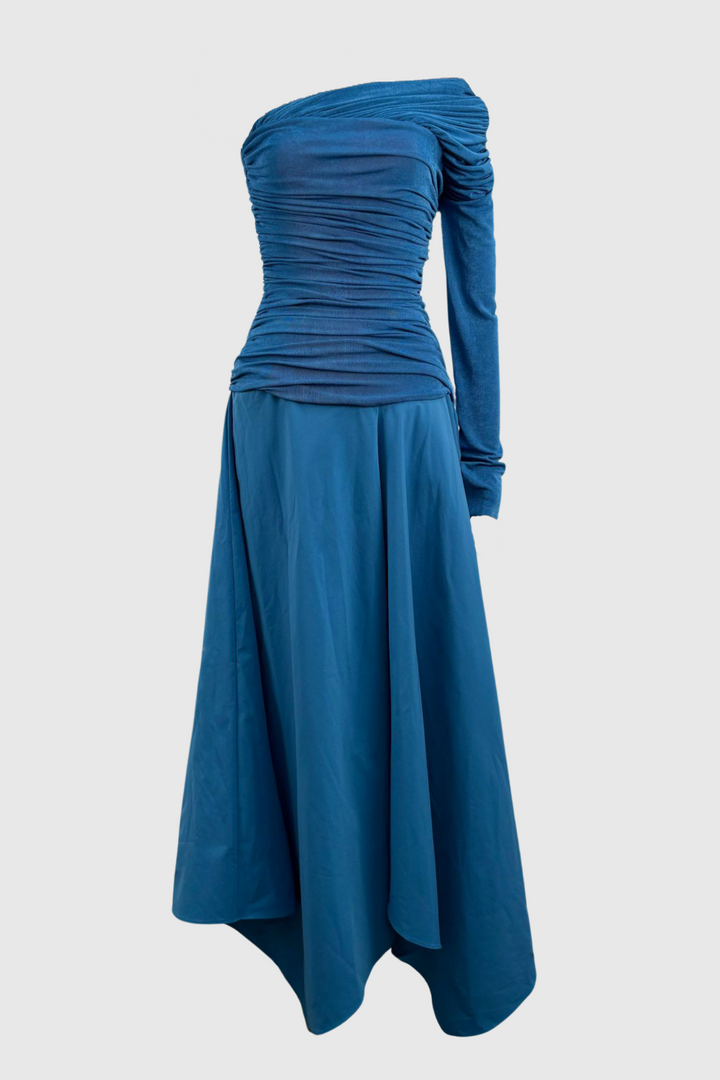 Harsian One Shoulder Draped Bustier Maxi Dress - Blue