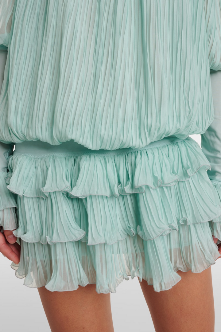 Inaki Halter Pleated Ruffle Mini Dress - Blue