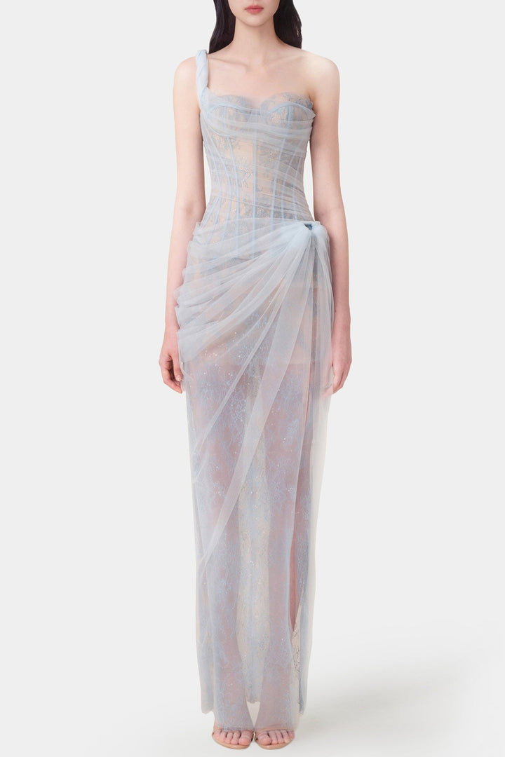 Inina Lace Corset One Shoulder Maxi Dress - Blue