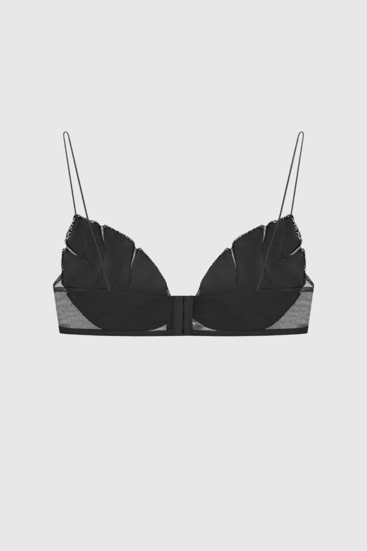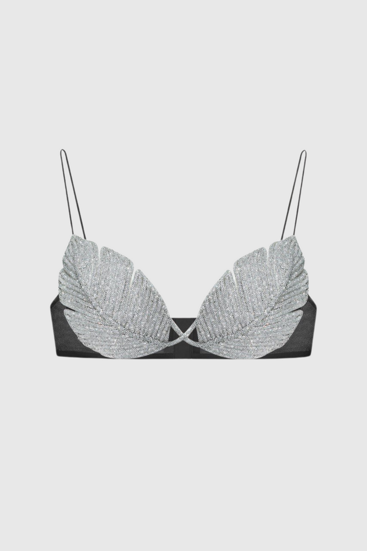 Elevate your intimate apparel collection with the Jackia Leaf Crystal Bralette. This exquisitely crafted piece features delicate leaf-inspired detailing adorned with subtle crystal embellishments. The thoughtful design balances refined aesthetics with comfortable support, making it perfect for special occasions or whenever you desire a touch of understated luxury beneath your attire.