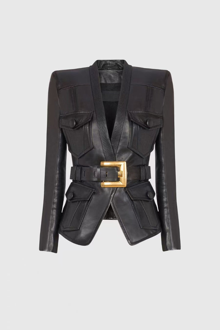 Elevate your wardrobe with the Jodell Belted Leather Jacket, a refined blend of classic style and modern elegance. Crafted from premium leather, this jacket features a sleek belted waist that enhances your silhouette while providing a tailored fit. Its minimalist design and high-quality materials ensure enduring sophistication, perfect for making a confident statement in any setting.