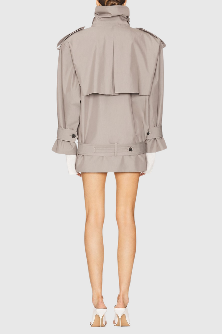 Elevate your wardrobe with the Khalon Double-Breasted Belted Trench Coat, where timeless design meets refined elegance. Crafted with attention to detail, this coat features a structured double-breasted front and a tailored belt to cinch the waist perfectly, enhancing every silhouette. Its classic trench style offers both sophistication and versatility, making it an ideal choice for transitional seasons or polished layering. Designed for those who appreciate understated luxury, this coat seamlessly blends functionality with a chic, modern edge.