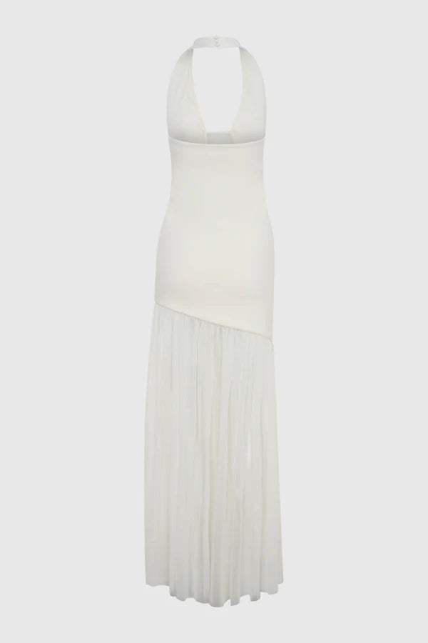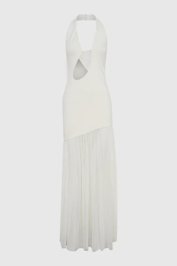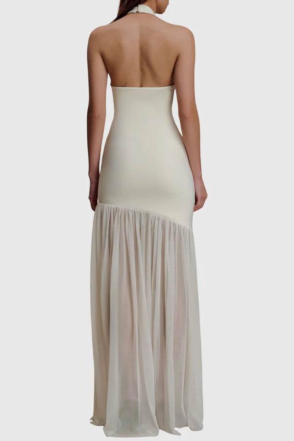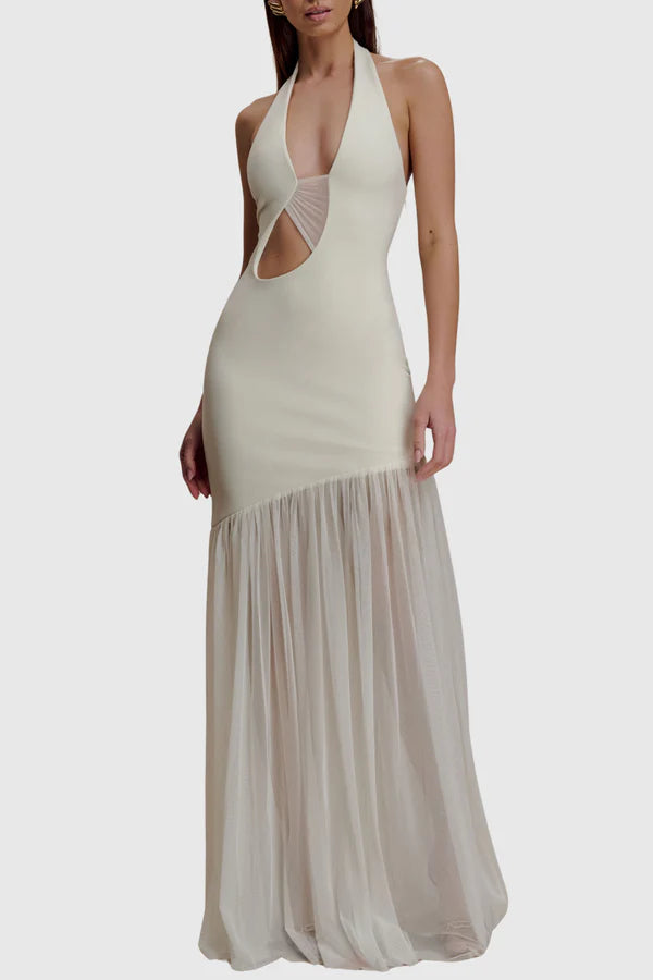 Kimba Halter Cutout Mesh Maxi Dress - White