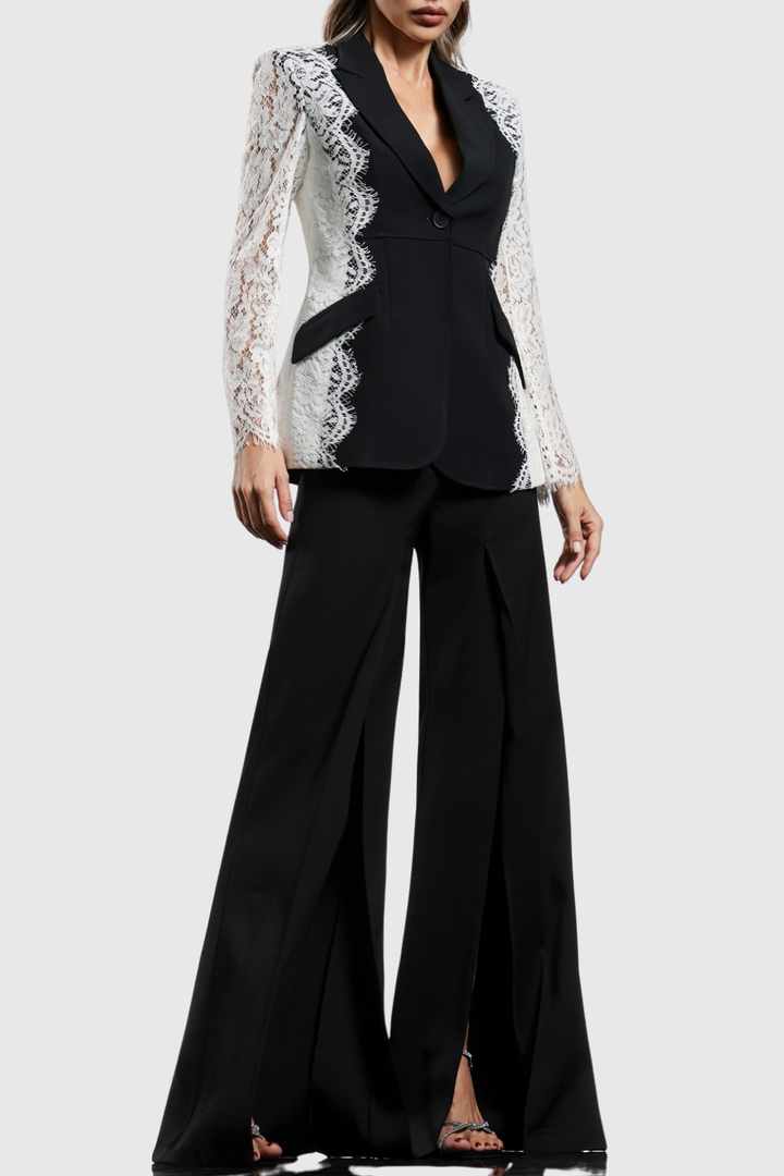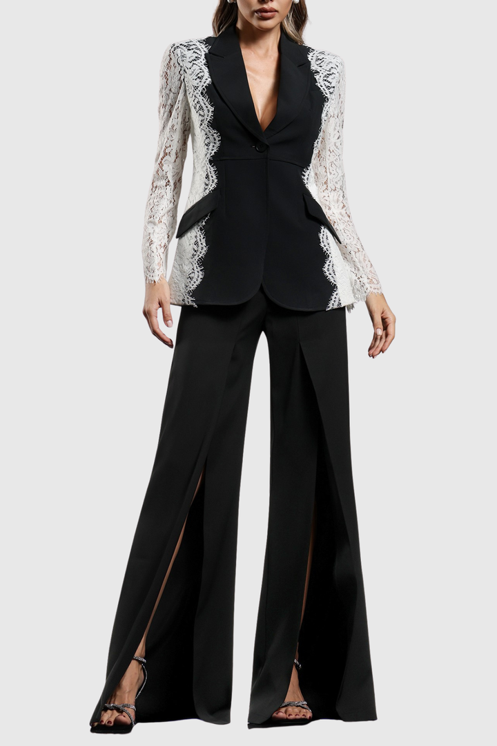 Elevate your ensemble with the Kottya Lace-trimmed Blazer, where classic tailoring meets delicate femininity. This blazer features refined lace accents that add subtle elegance to a structured silhouette, making it perfect for both professional settings and stylish evenings. Crafted to blend sophistication with comfort, it offers a polished look that enhances your confidence and grace.