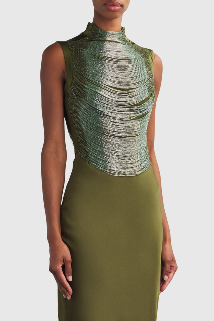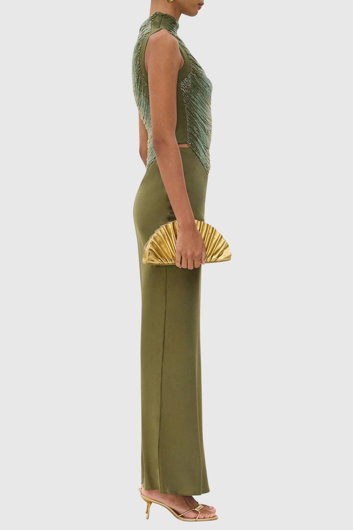 Laikla Fringe Sleeveless Top & Satin Skirt Set