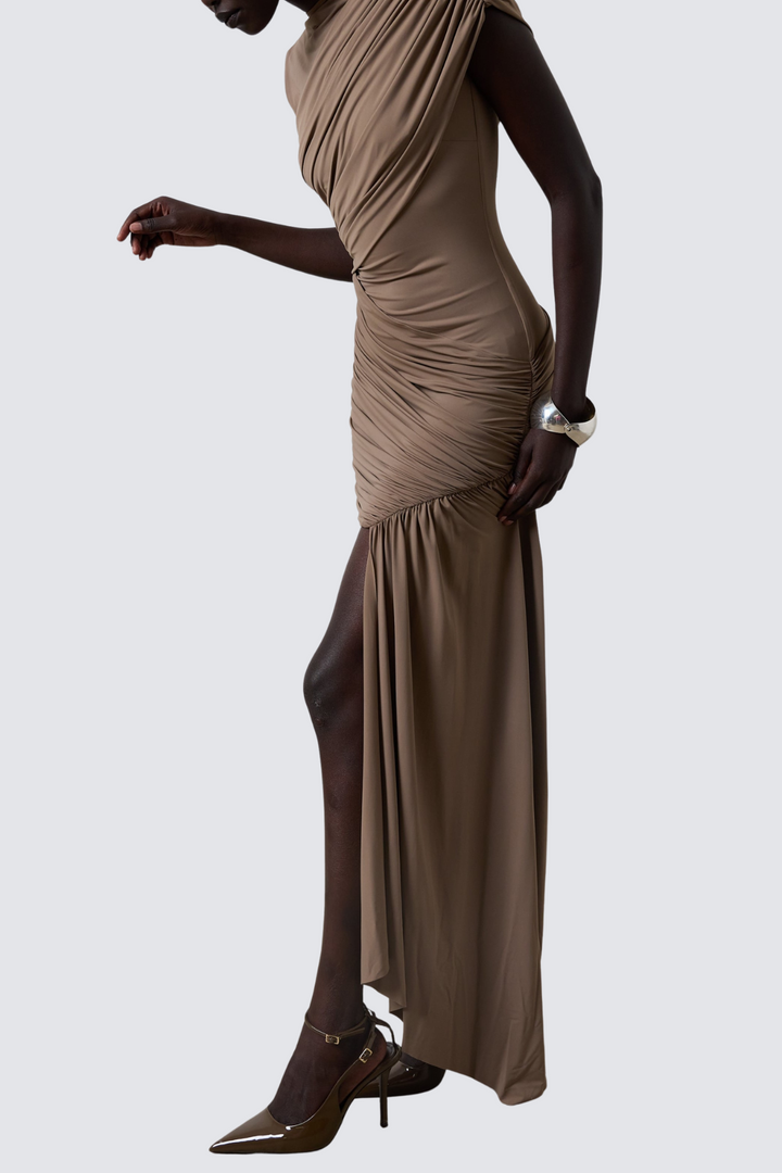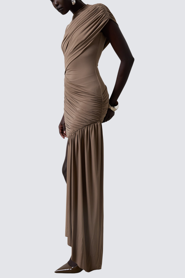 Laisha Sleeveless Draped Mini Dress - Khaki