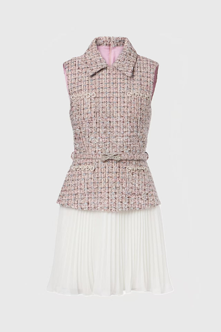 Lianne Tweed Sleeveless Pleated Mini Dress