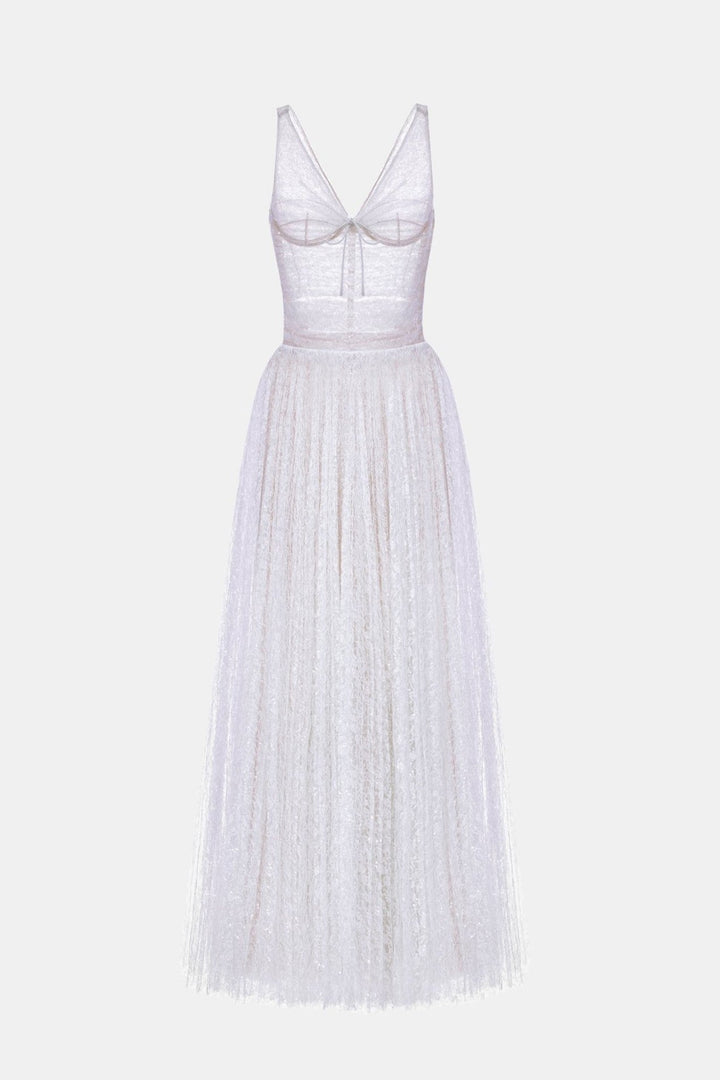 Elevate your wardrobe with the Lorya Mesh Pleated Maxi Dress, a blend of elegance and effortless style. Crafted with delicate pleated mesh, this maxi dress flows gracefully, creating a flattering silhouette that moves beautifully with every step. Its refined design makes it perfect for formal events or sophisticated evenings out, offering both comfort and timeless charm.