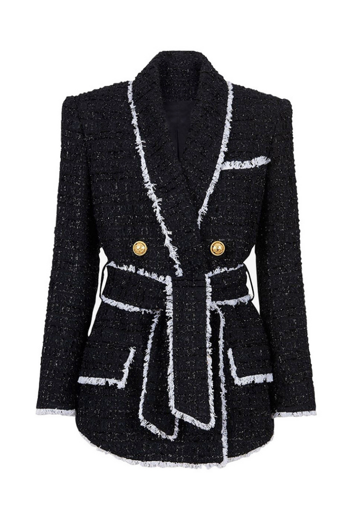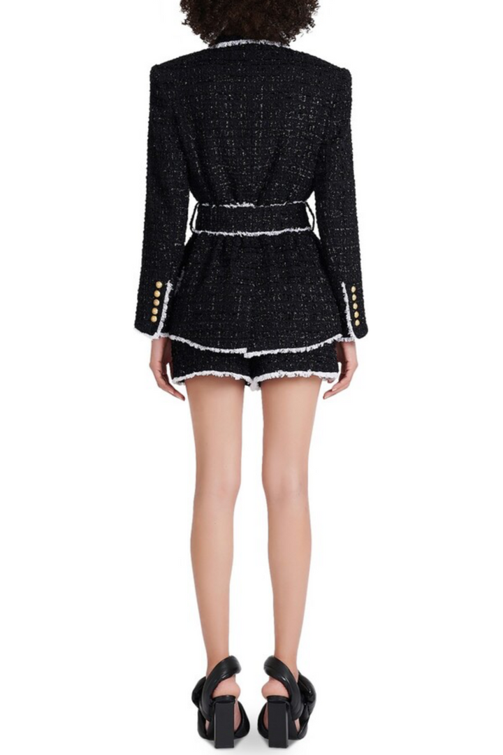 Mishka Breasted Tweed Jacket With Belt- Black
