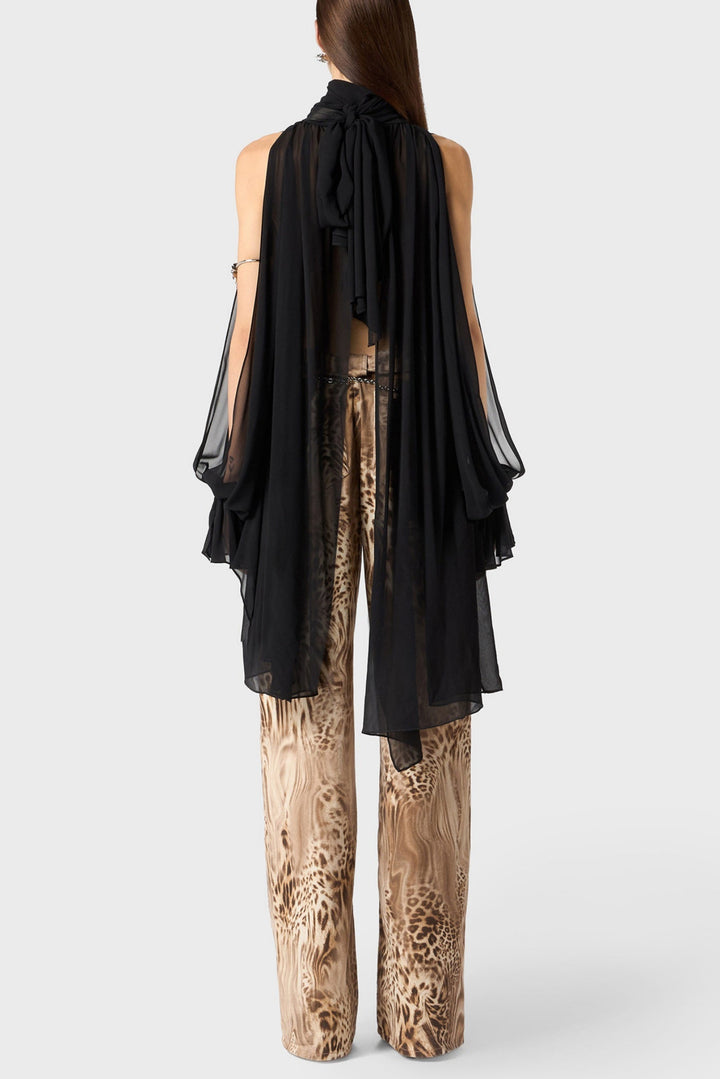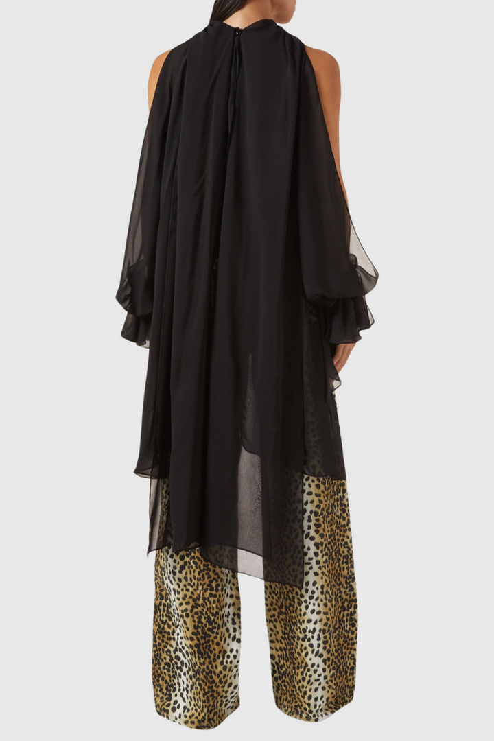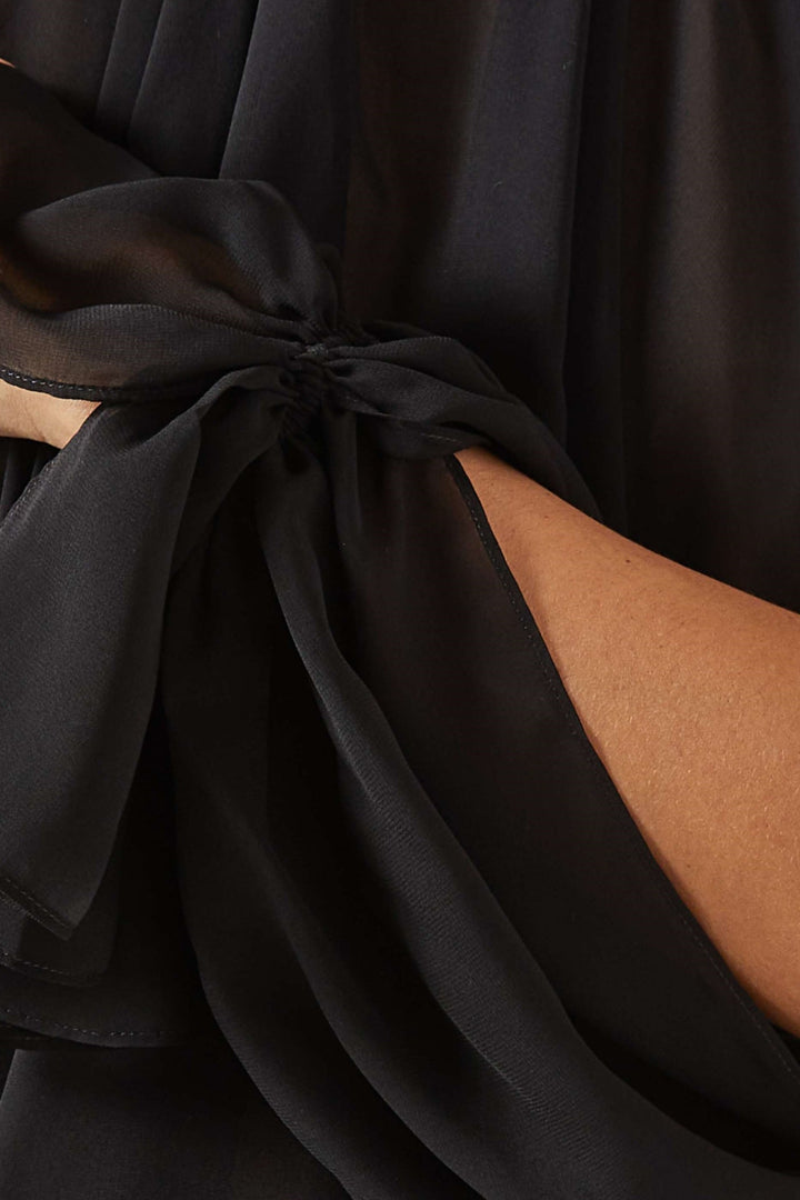 Mistee Asymmetric Slit-sleeve Blouse - Black