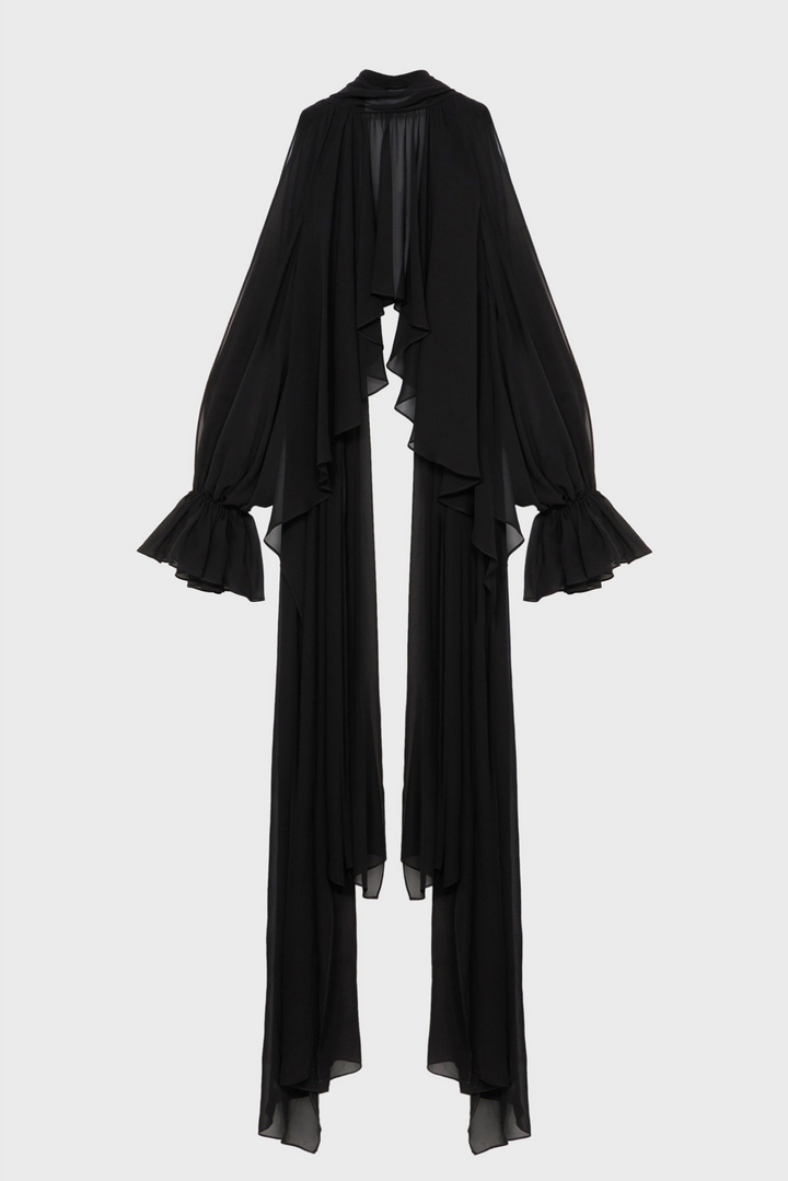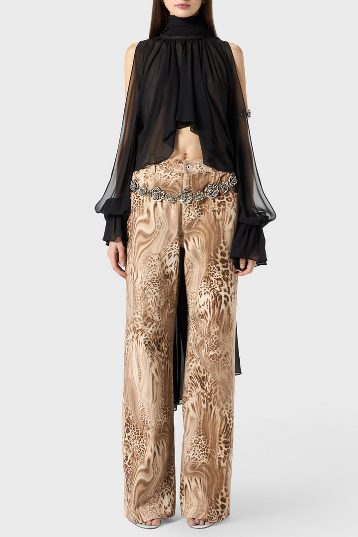 Indulge in luxury with our Mistee Asymmetric Slit-sleeve Blouse in black. The unique asymmetric design and slit-sleeves add a touch of sophistication to any outfit. Made with premium materials, this blouse exudes elegance and exclusivity, a must-have for any fashion-forward individual. Elevate your wardrobe with this timeless piece.