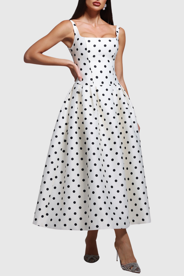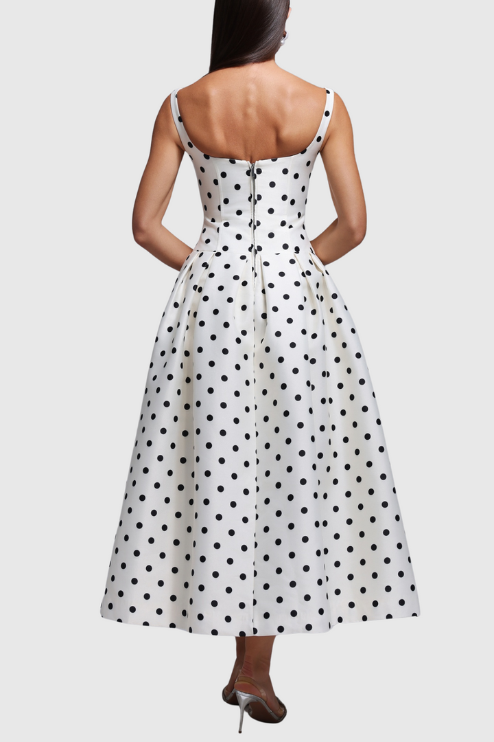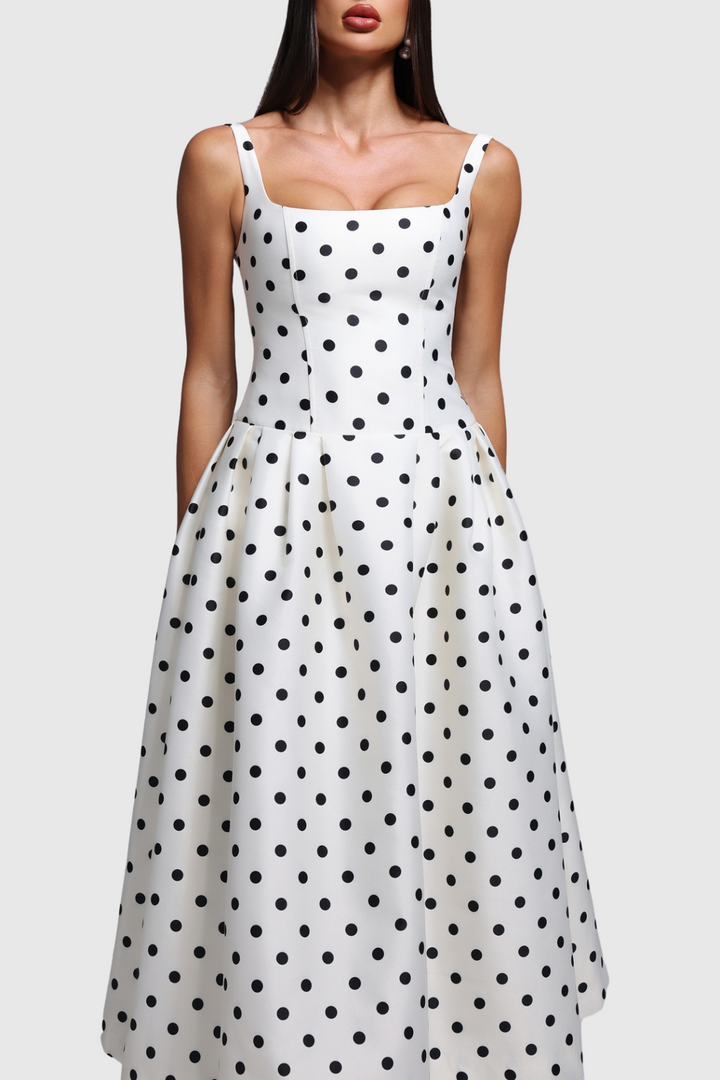 Elevate your wardrobe with the Nataliya Polka Dot Corset Maxi Dress, a refined blend of classic charm and modern elegance. Featuring a flattering corset silhouette that accentuates your figure, this maxi dress is adorned with timeless polka dots for a sophisticated touch. Perfect for special occasions or stylish evenings, it offers both comfort and grace, making a memorable statement wherever you go.