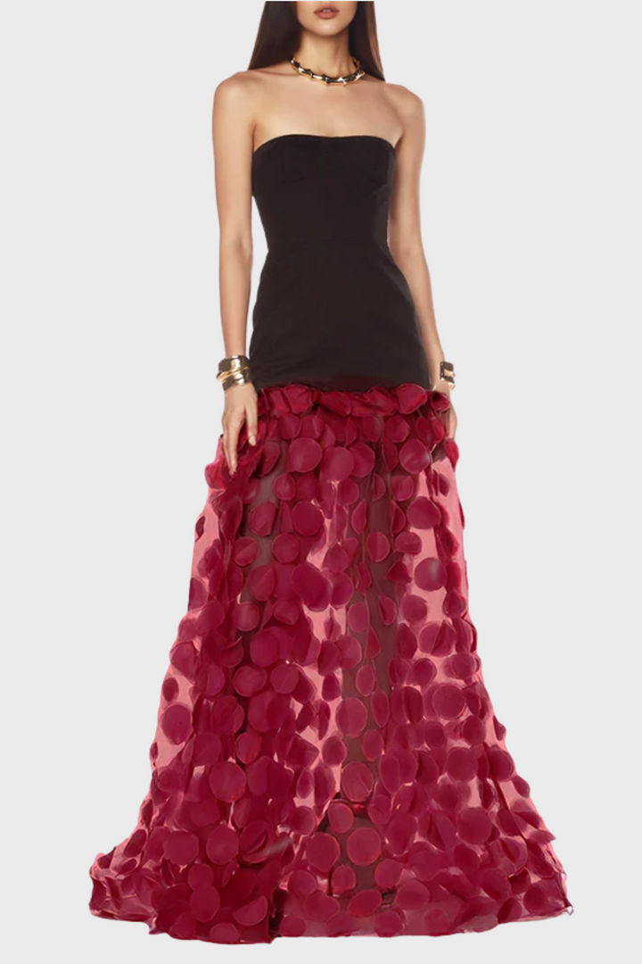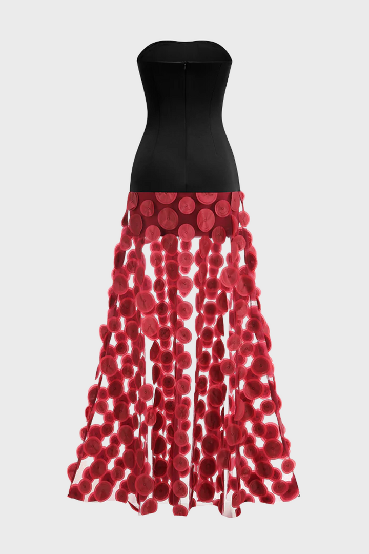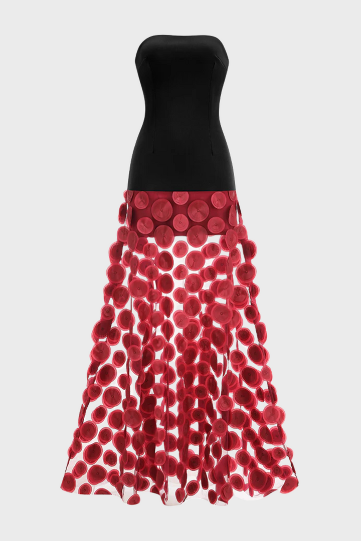 Nodin Strapless Dot Mesh Maxi Dress - Red