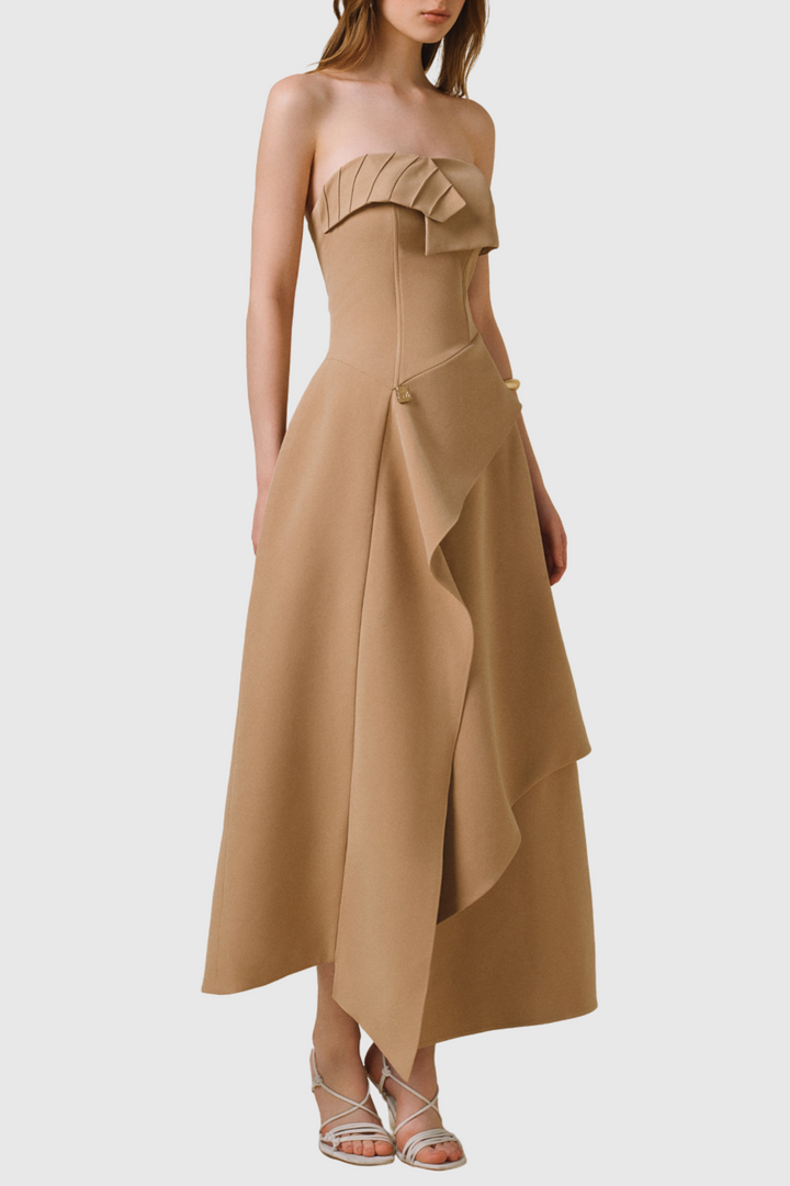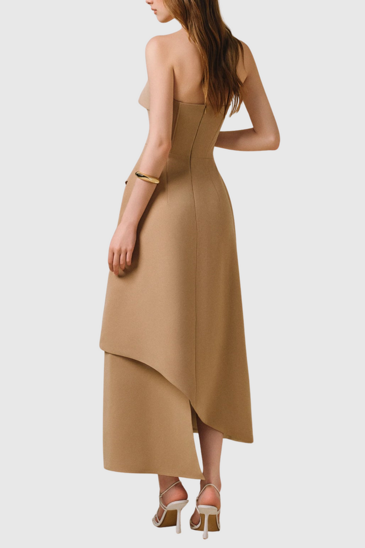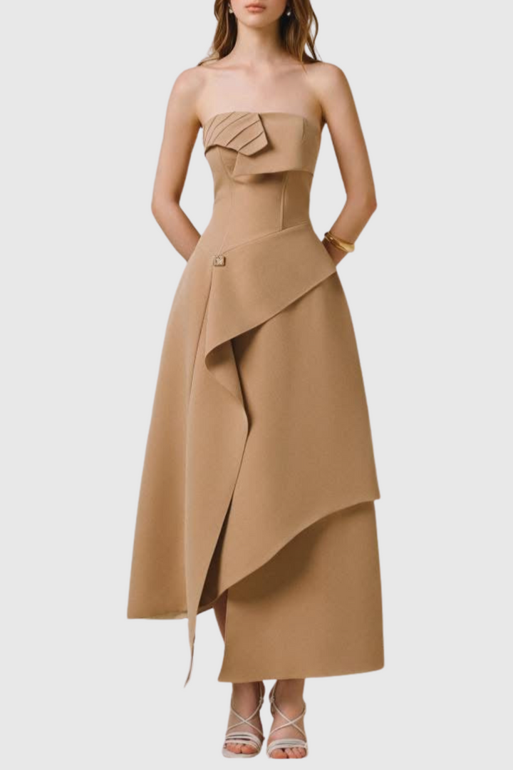 Elevate your wardrobe with the Pavlo Asymmetrical Strapless Midi Dress, a refined choice for elegant occasions. Its sleek strapless design and asymmetrical hem create a modern silhouette that flatters every figure. Crafted to offer both style and comfort, this midi dress is perfect for making a graceful statement at any event.