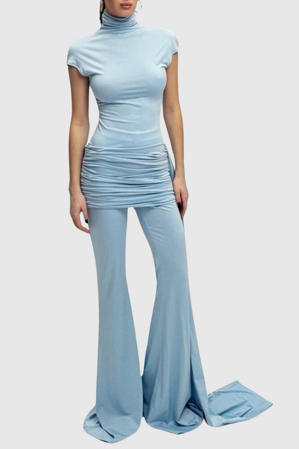 Elevate your style with the Rufas Draped Flared Jumpsuit in striking Blue. Made with exquisite draping and a flared silhouette, this luxurious piece exudes sophistication and exclusivity. Perfect for any occasion, this jumpsuit is sure to make a statement and leave a lasting impression.