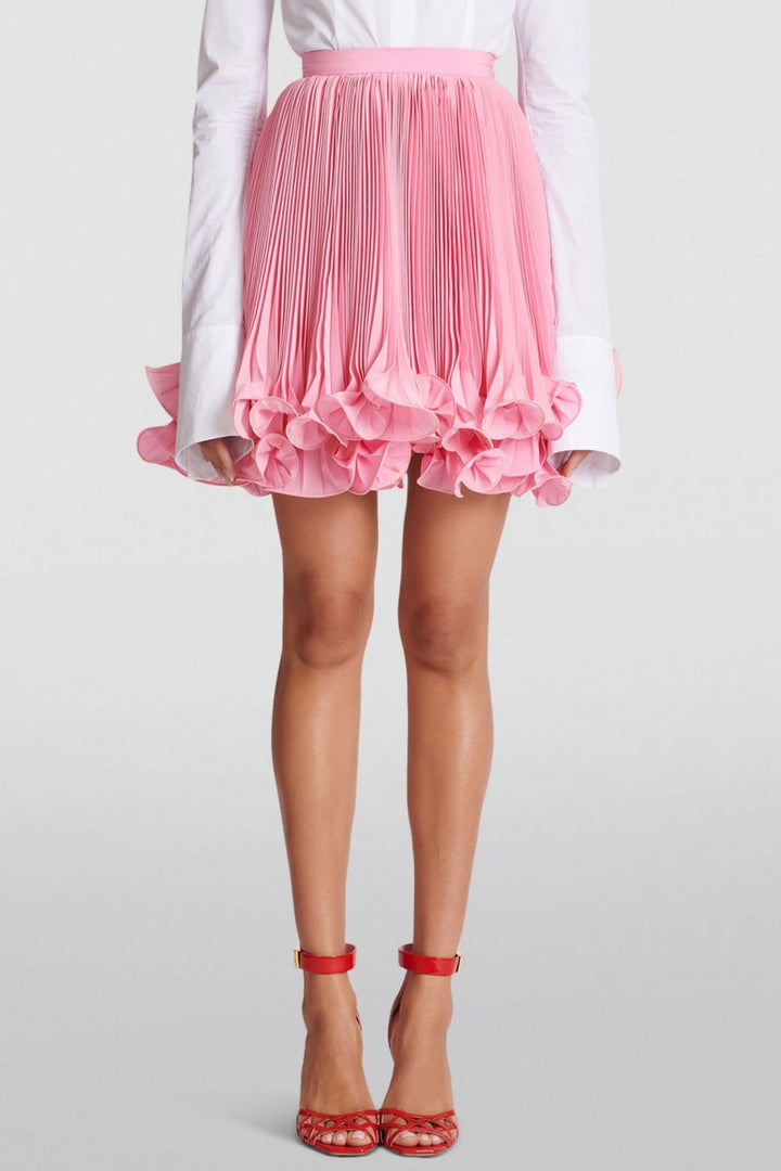 Elevate your wardrobe with our Sonnet Pleated Ruffled Mini Skirt. Designed with delicate pleats and ruffles, this skirt exudes elegance and sophistication. Its versatile style allows for effortless day-to-night transitions. Dress it up with heels or keep it casual with sneakers. Experience the luxury of high-quality craftsmanship.