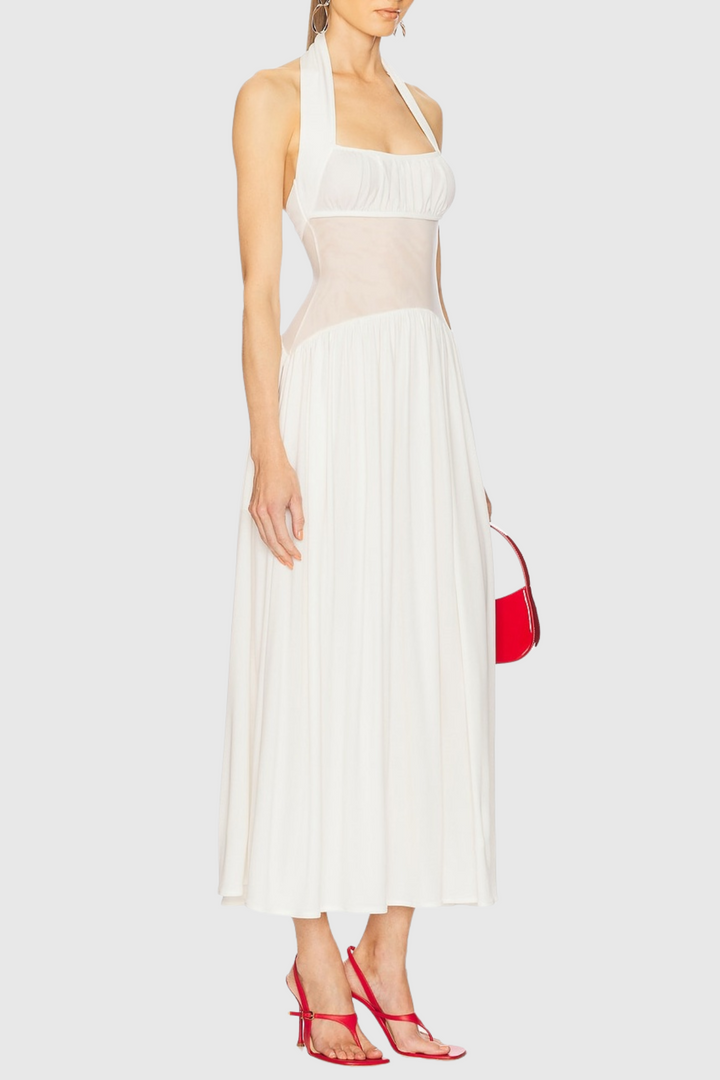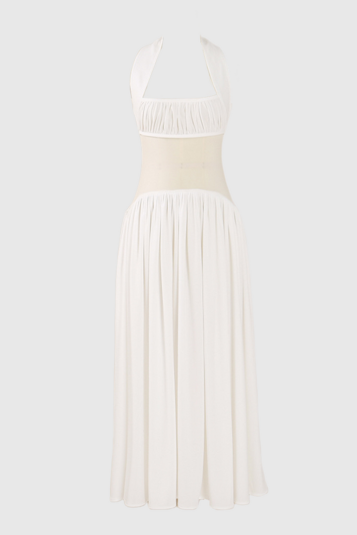 Elevate your evening attire with the Tameron Halter Mesh Ruffle Maxi Dress. This sophisticated silhouette features a flattering halter neckline, delicate mesh overlay, and cascading ruffles that create graceful movement with every step. Perfect for formal occasions when an unforgettable impression is essential.