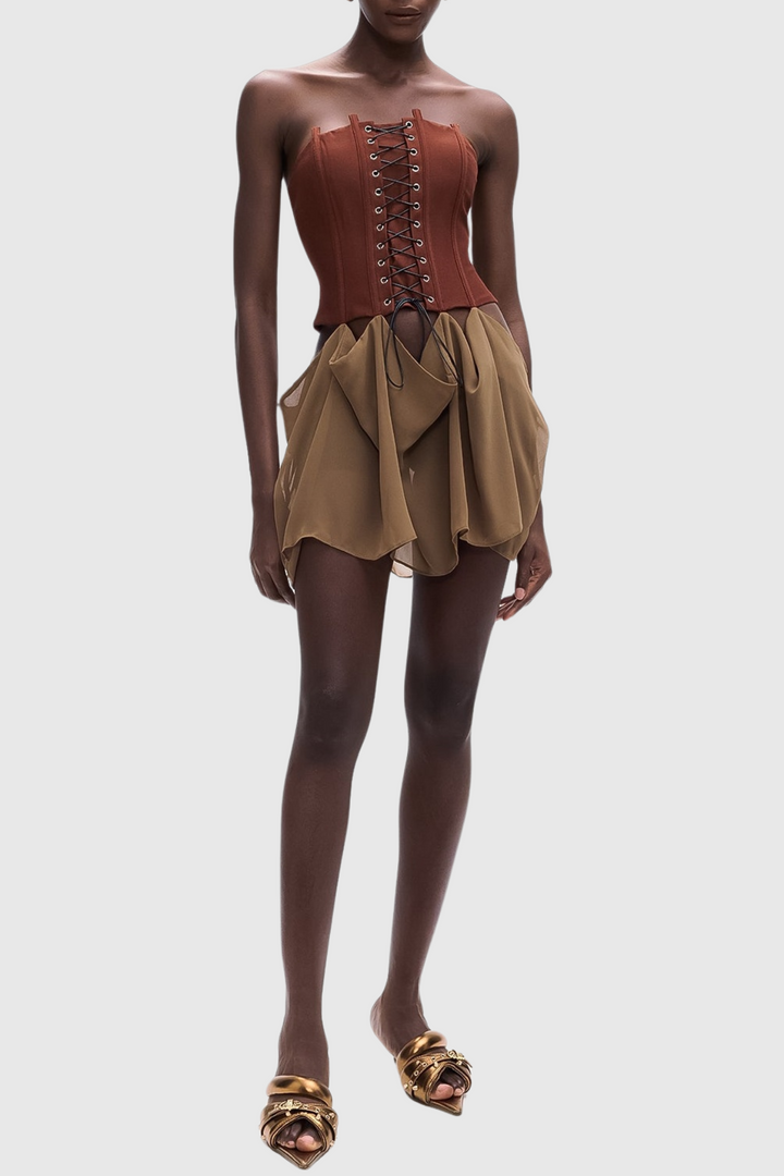 Elevate your evening with the Tizoc Strapless Corset Lace Up Mini Dress, designed to accentuate your silhouette with its structured corset bodice and delicate lace-up detailing. This elegant mini dress offers a refined, strapless fit that highlights your neckline and shoulders, perfect for sophisticated occasions. Crafted to combine style and comfort, it ensures you make a confident statement wherever you go.