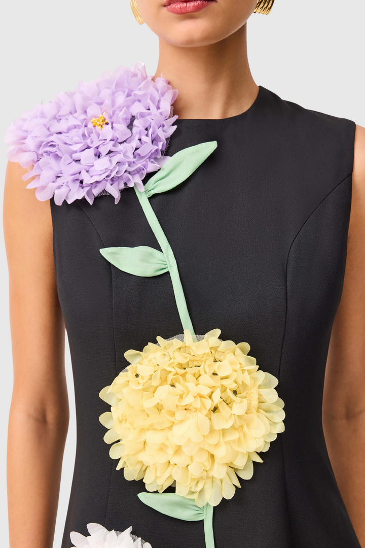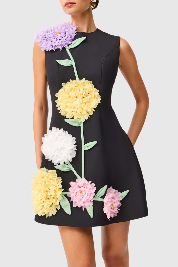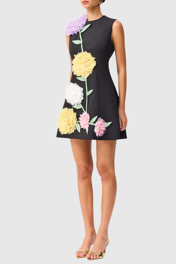 Trevia Floral Appliqué Sleeveless Mini Dress - Black